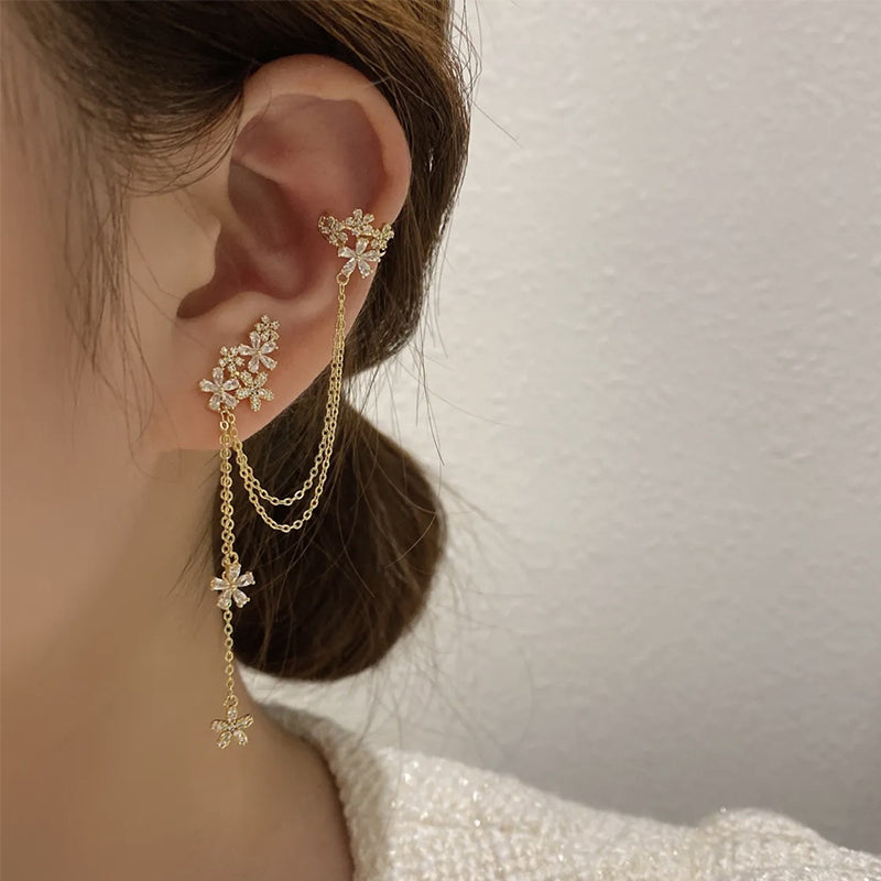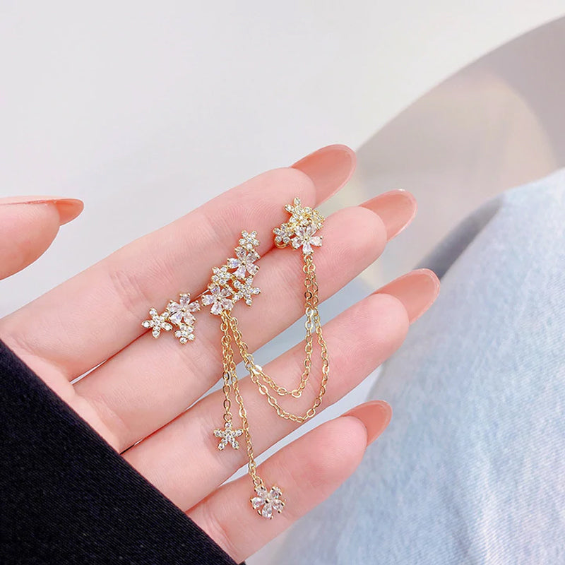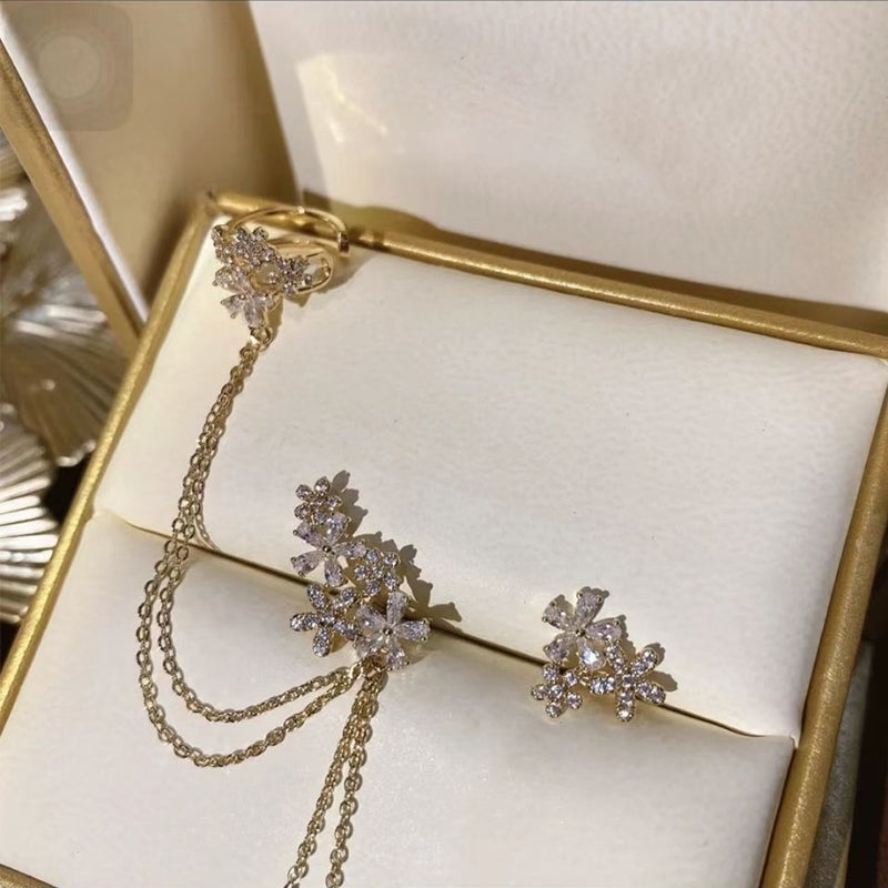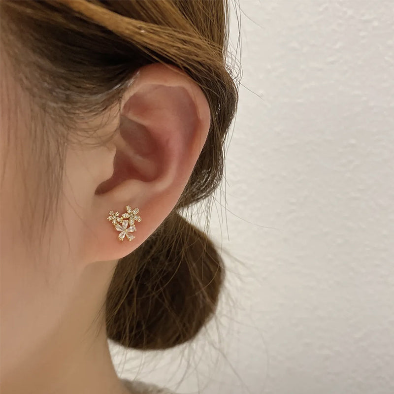 Paket: 1 Paar Asymmetrische Kristallblumen-Ohrringe