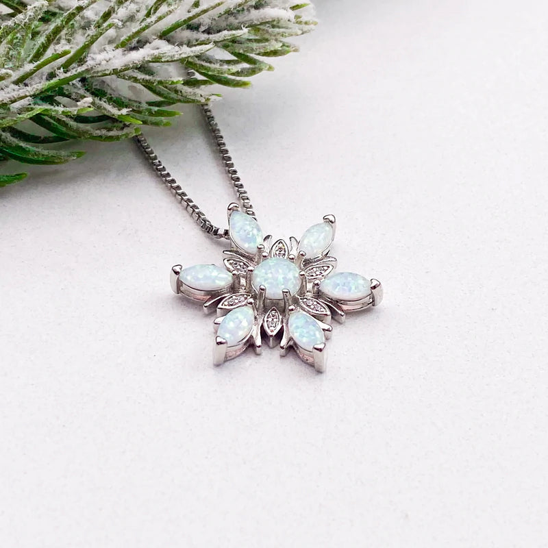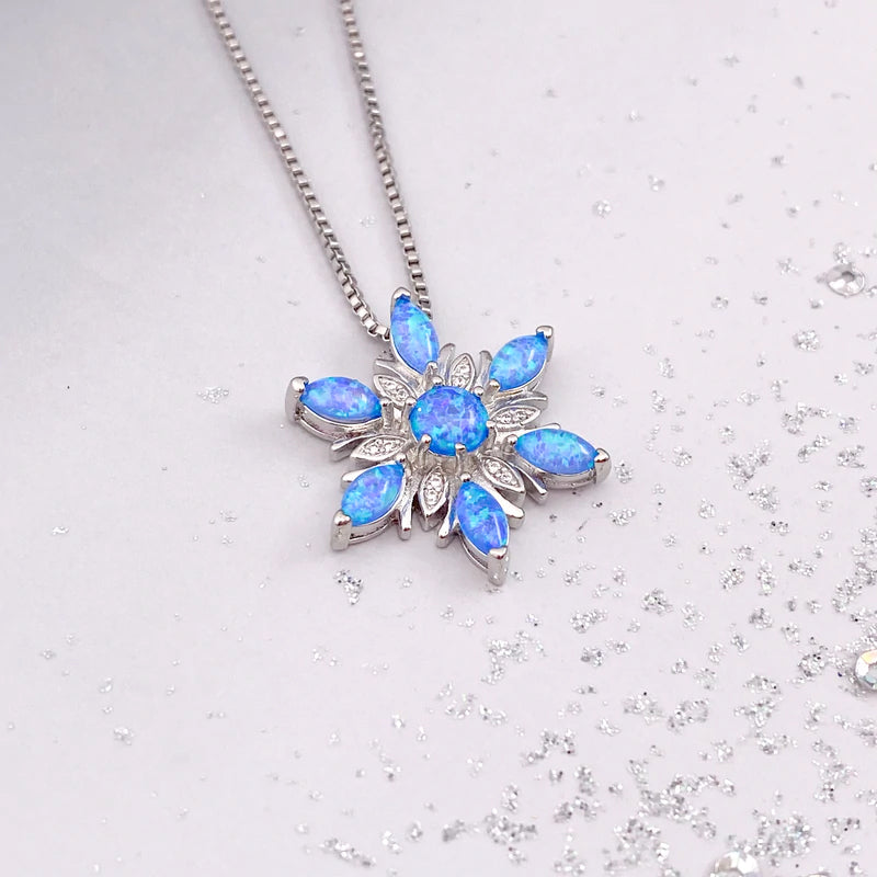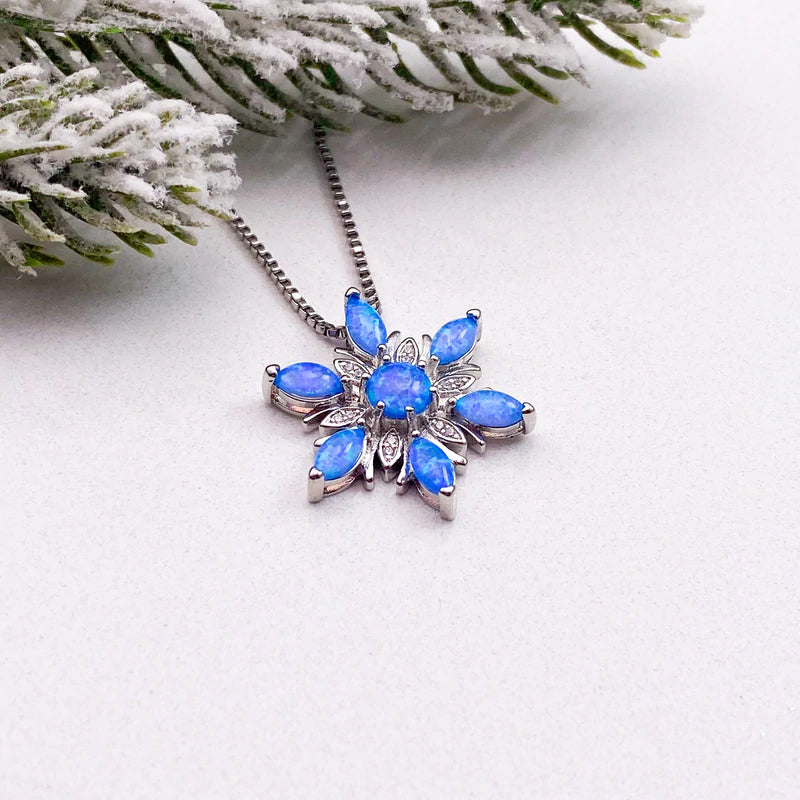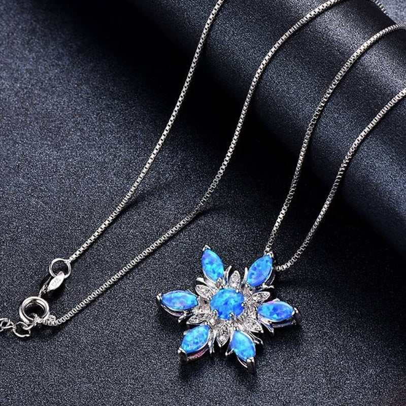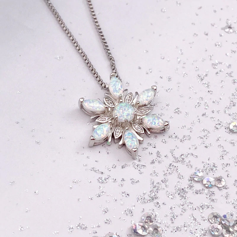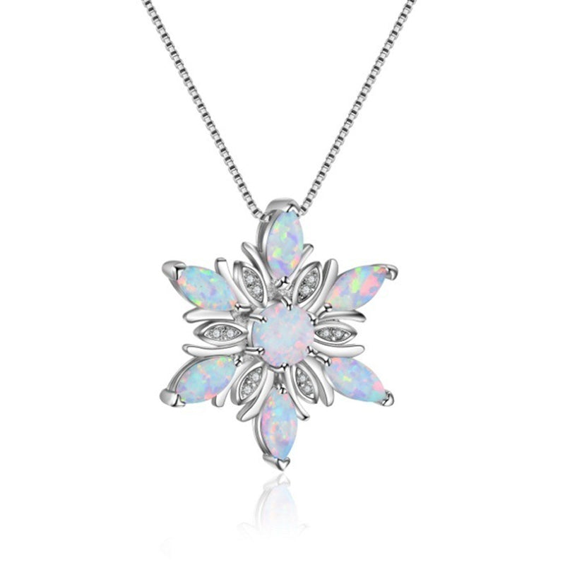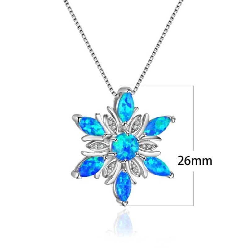 ❉ Attraktives Schneeflocken-Design, diese Halskette mit Anhänger besteht aus einer hochwertigen Legierung und Opal, damit Sie charmanter und attraktiver aussehen.