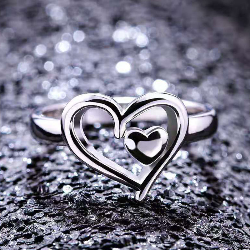 Paket: Damen herzförmiger Ring mit Schriftzug * 1