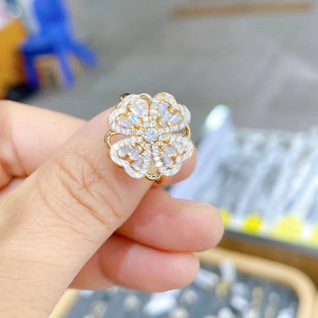 Der Ring ist einzigartig geformt, um sich wie ein Windrad zu drehen. Es ist vom glücklichen vierblättrigen Kleeblatt inspiriert. Mit diesem Design sehen Sie auffälliger aus.