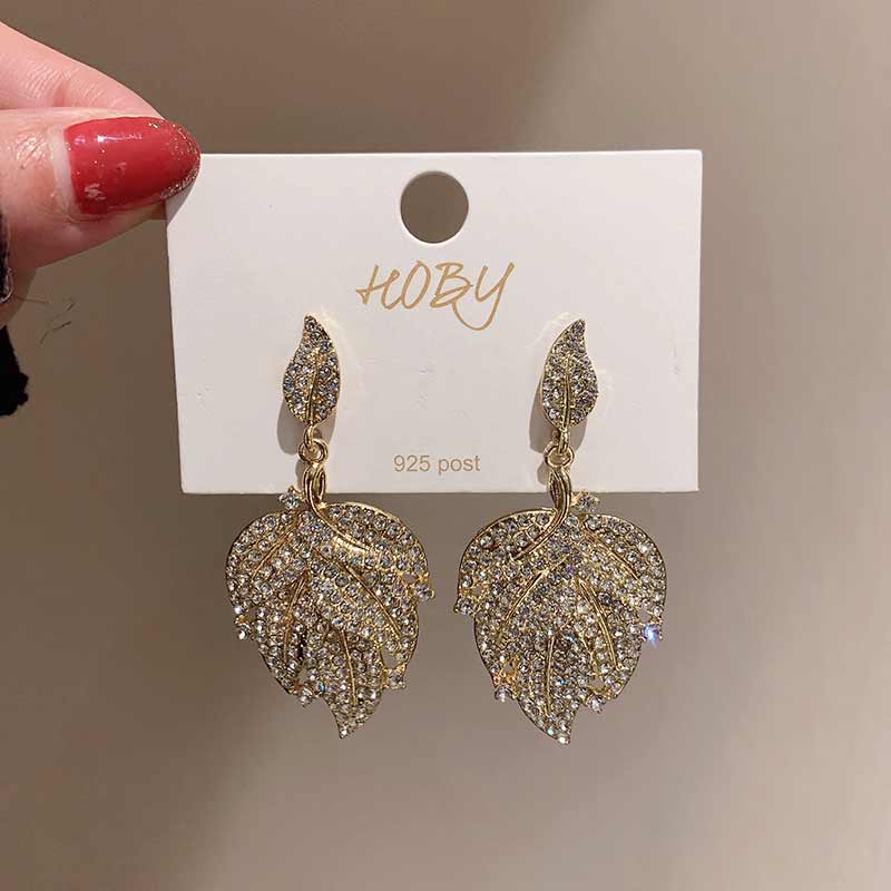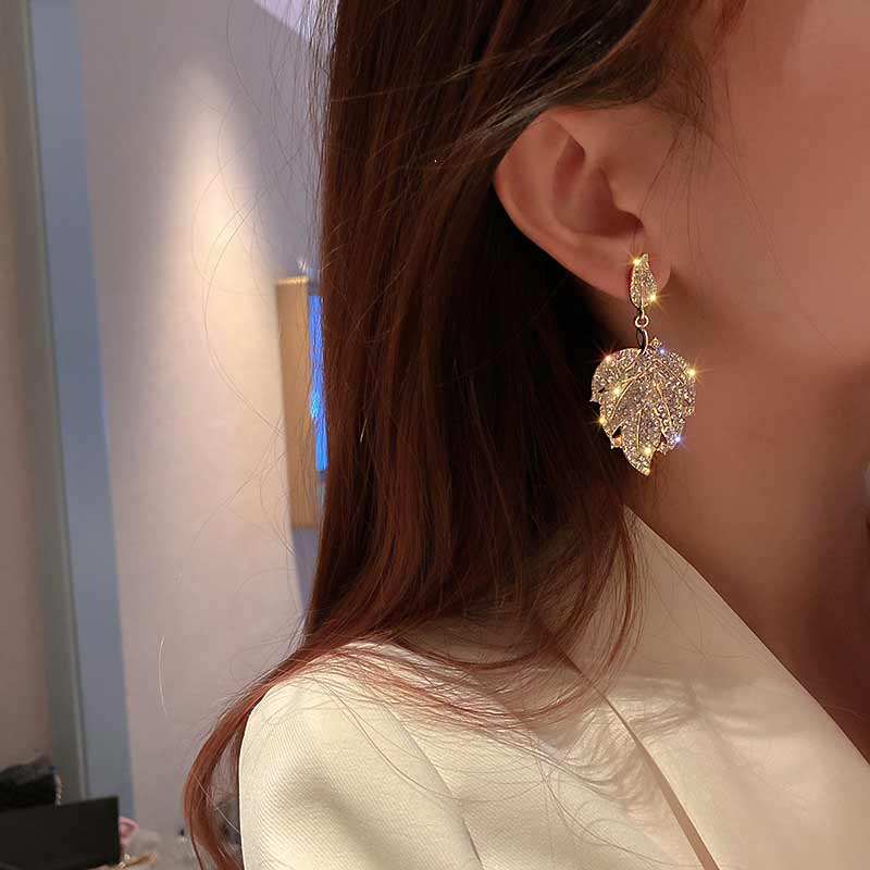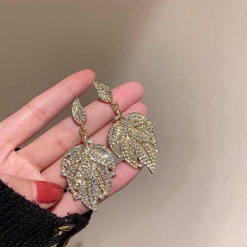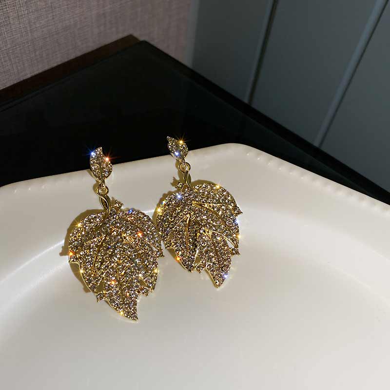 • Paket: 1 Paar Elegante Diamant-Blatt-Ohrringe