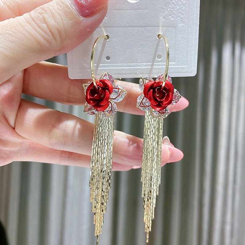 Paket: Elegante stilvolle lange gefranste Rosenohrringe * 1 Paar