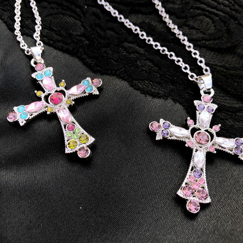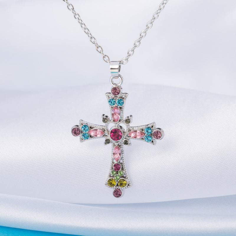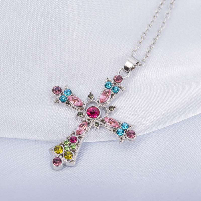 Paket: 1 * Farbige Kreuz-Halskette Aus Kristall