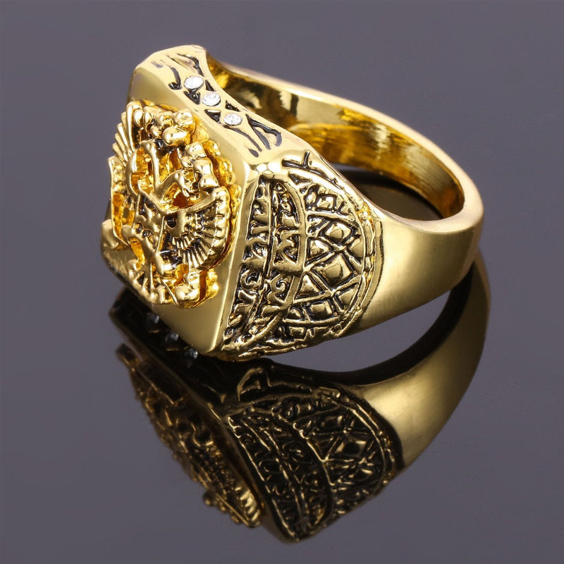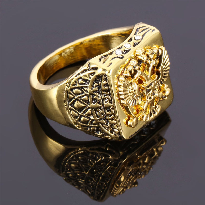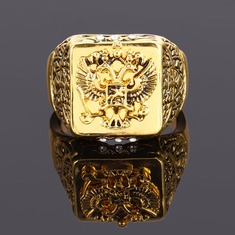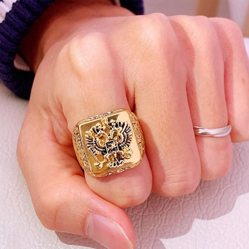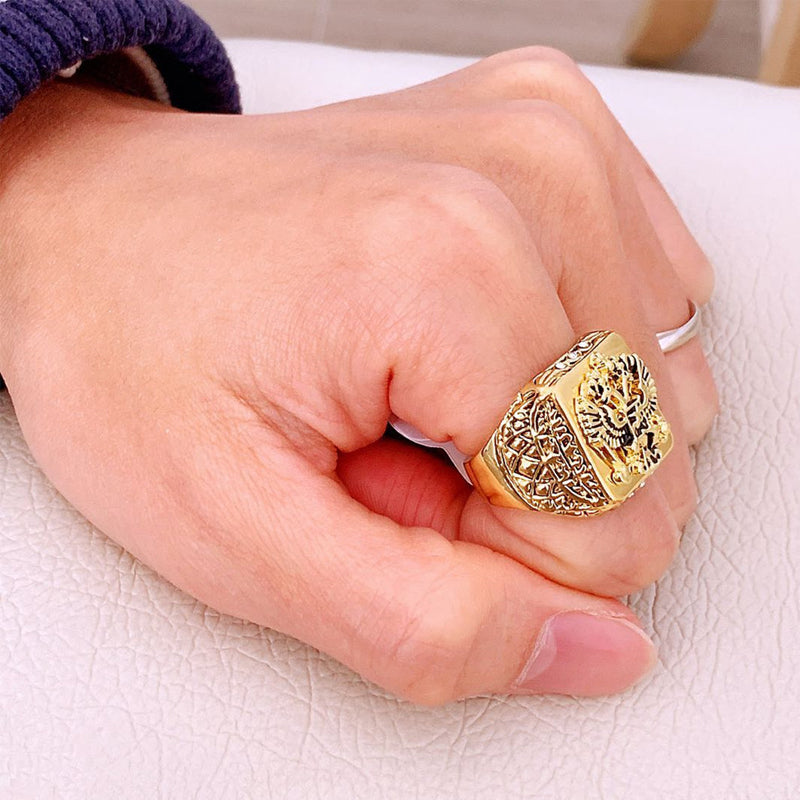 • EIN MODERNER KLASSIKER: Heben Sie sich mit einem glamourösen vergoldeten Ring hervor, der zu Ihrem Stil passt, ohne die Bank zu sprengen! Dieser Artikel wurde speziell hergestellt, um genauso auszusehen wie echte massive Goldringe, die Tausende von Dollar kosten! Es hat auch ein schönes Gewicht, fühlt sich an wie ein echter Goldring. Der stilvolle Ring mit Doppeladlerkopf-Gravur und Funkeln ist ein einfaches, aber elegantes Stück, das jedes Outfit ergänzt.