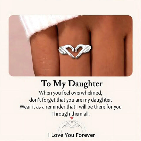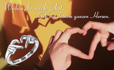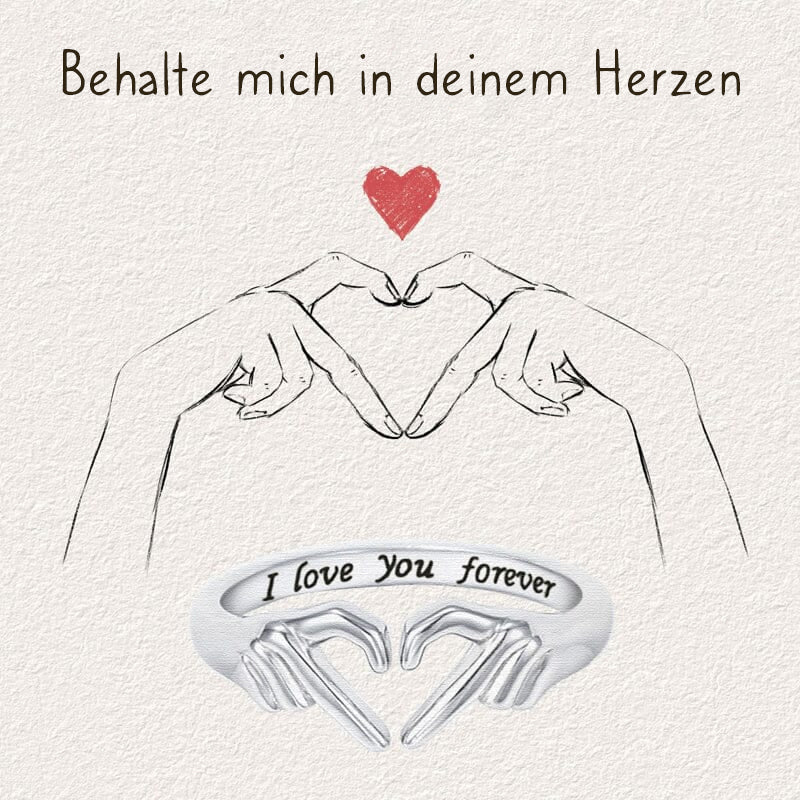 Silberner verstellbarer Herzring, Herz steht für ewige Liebe, Hände stehen für Freundschaft, mit eingraviertem "I love you forever", ein Symbol für Liebe und Freundschaftsverpflichtung. Dieser verstellbare hohle Herzring ist ein modernes, minimalistisches und unverzichtbares Stück für den Alltag.