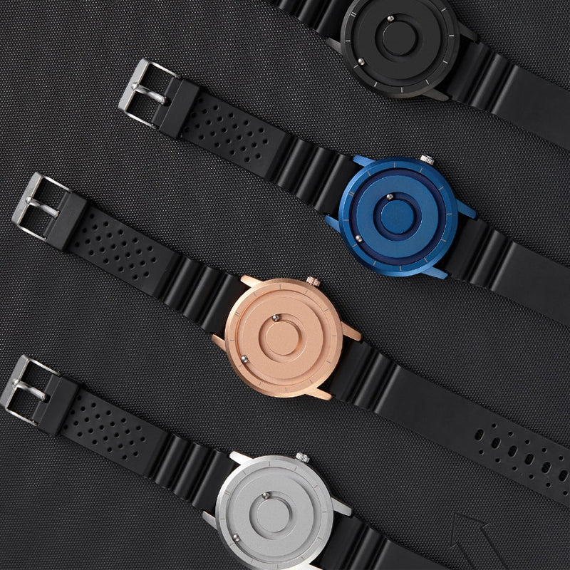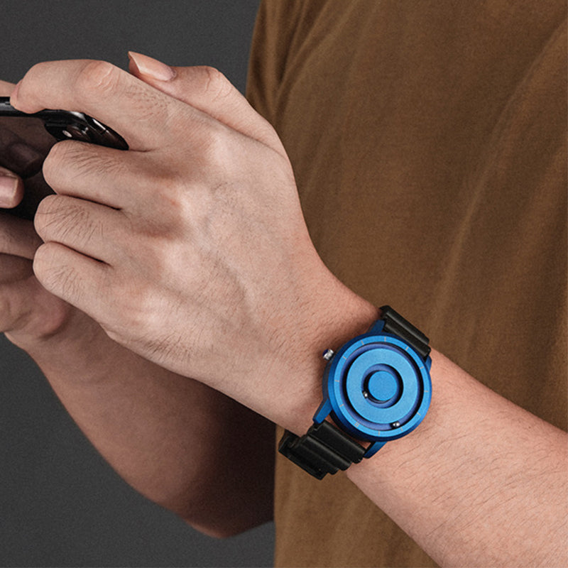 Neuartige Uhr: Im Gegensatz zu herkömmlichen Zeigern wird die Zeit durch eine in das Zifferblatt eingebettete Stahlkugel dargestellt. Einer steht für Minuten und der andere für Stunden. Lassen Sie die Zeit durch Berührung wahrnehmen.