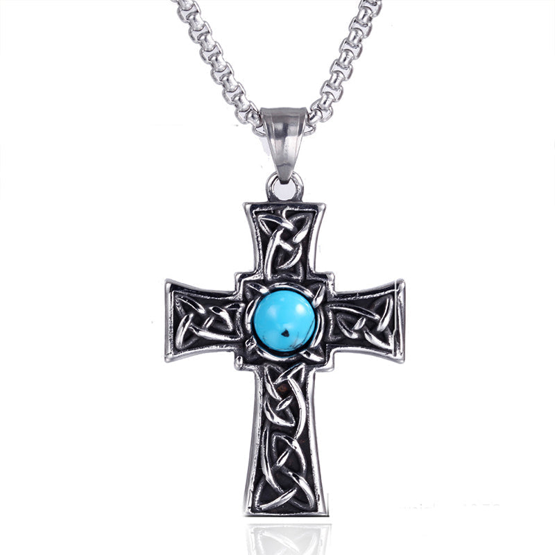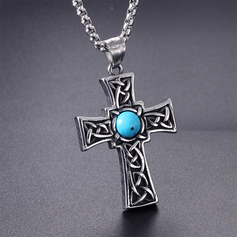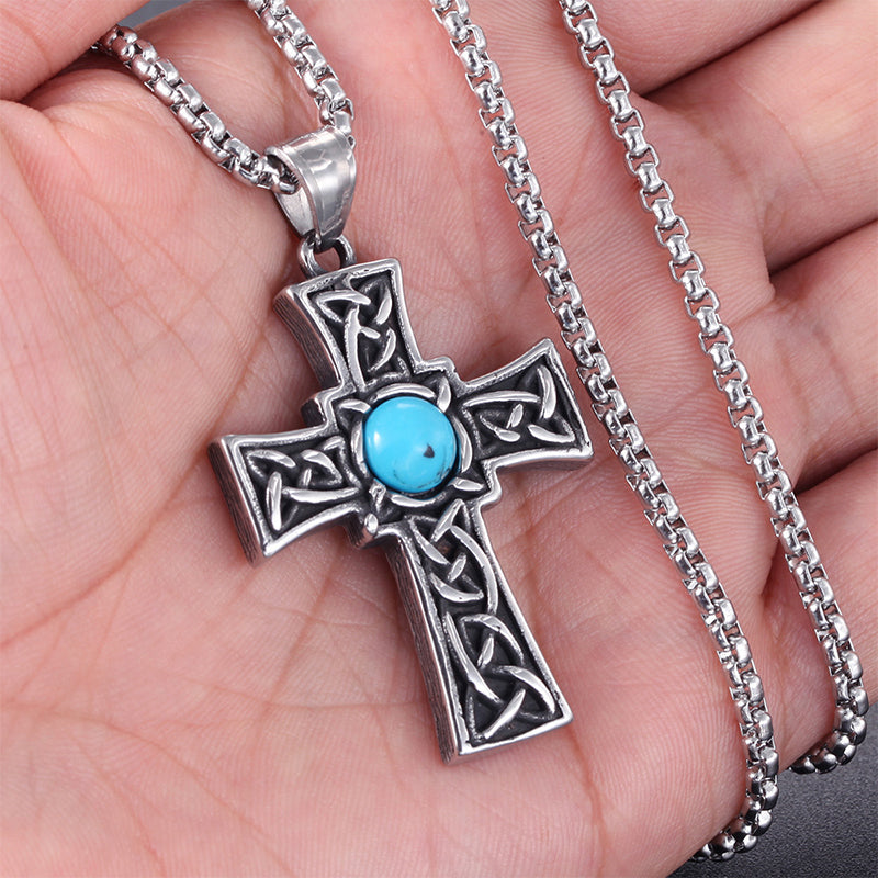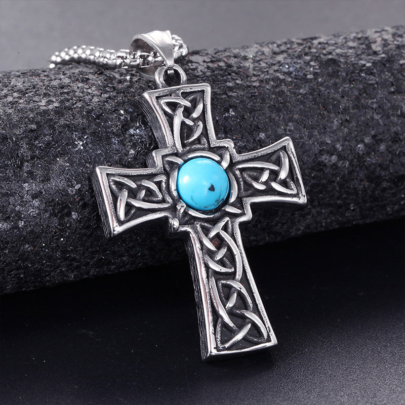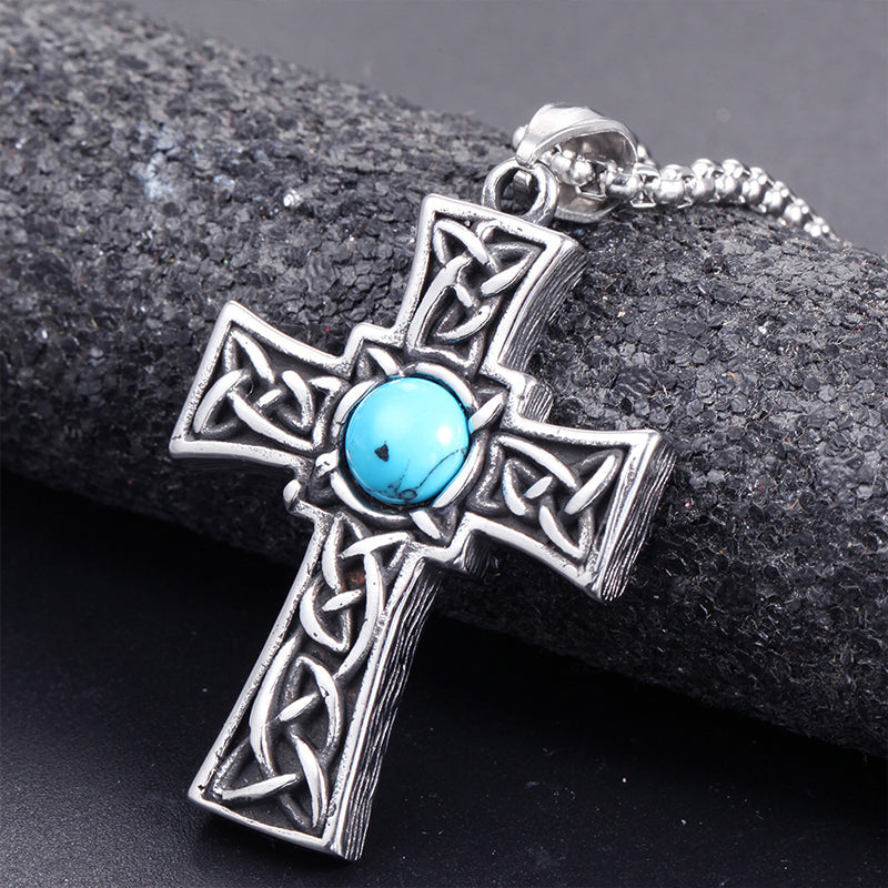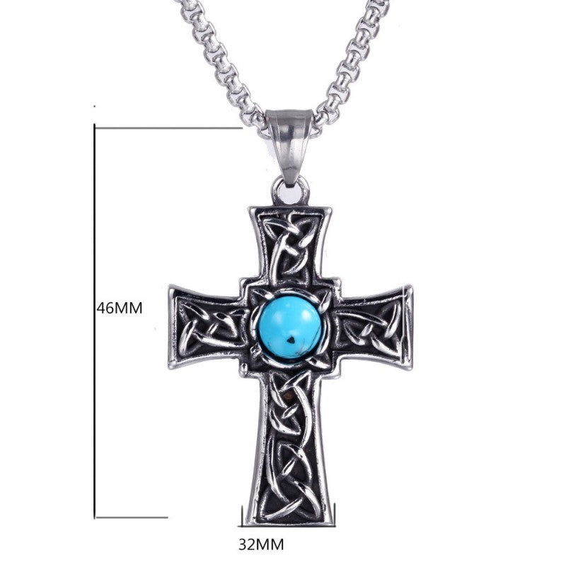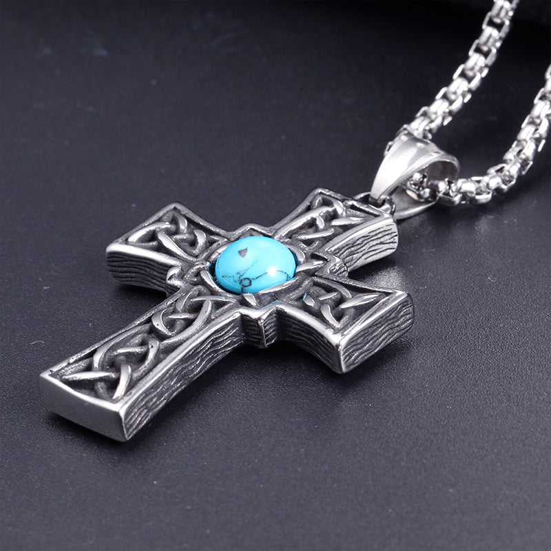 Paket: Keltisches Kreuz Halskette mit Türkis für Männer * 1