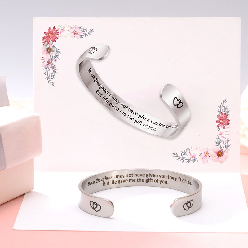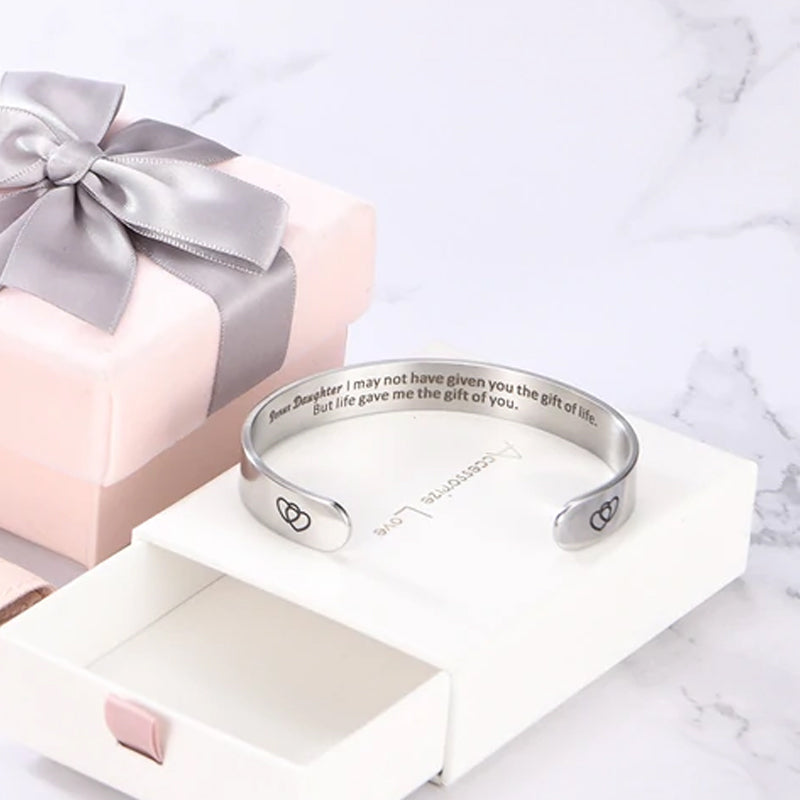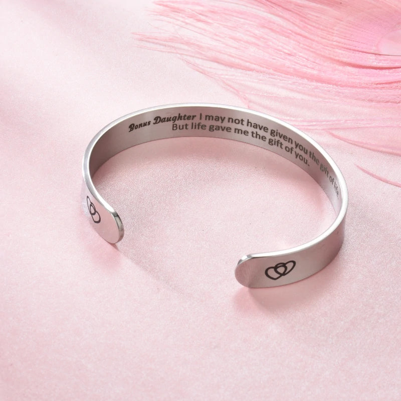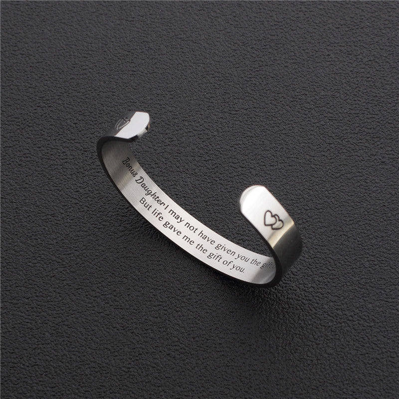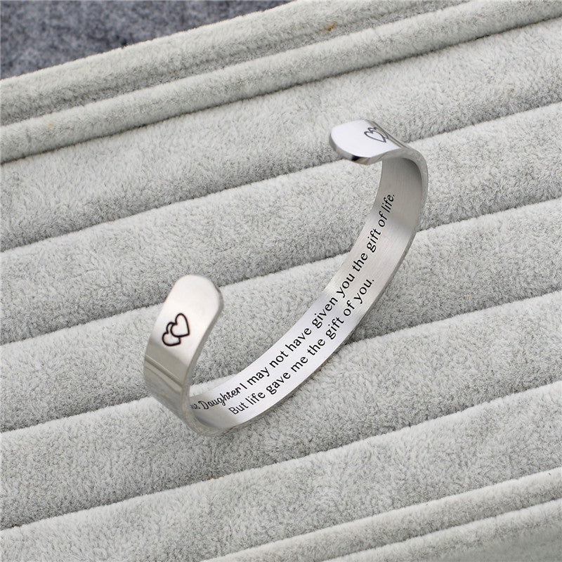 HÖCHSTE QUALITÄT - Dieses Armband für meine Tochter besteht aus 316L Edelstahl für eine lange Lebensdauer, ist umweltfreundlich, hypoallergen, bleifrei und rostet oder wird nicht angelaufen. Hochglanzpolierte, glänzende Oberfläche, sehr glatt mit abgerundeten Kanten, um Kratzer am Handgelenk zu vermeiden, klare gravierte Wörter, gut lesbar