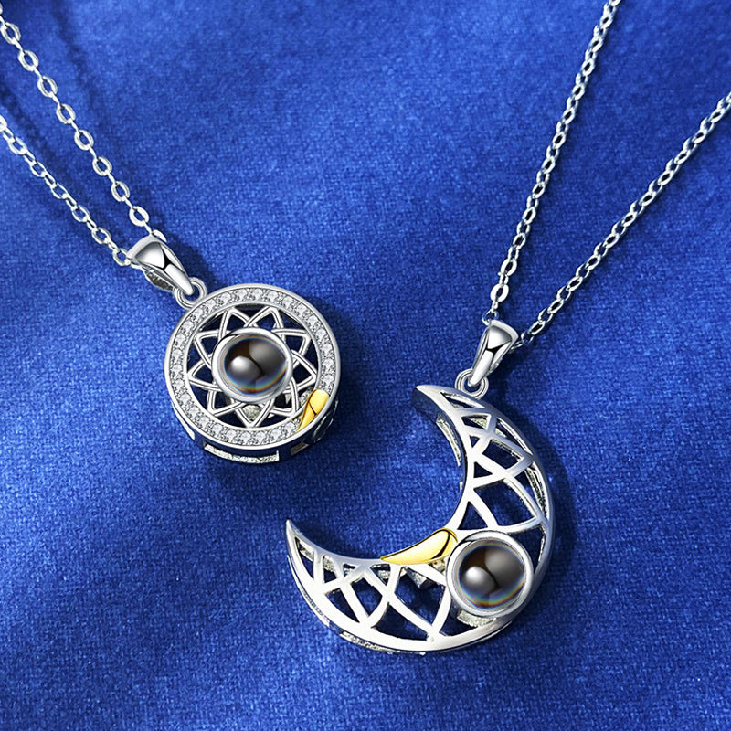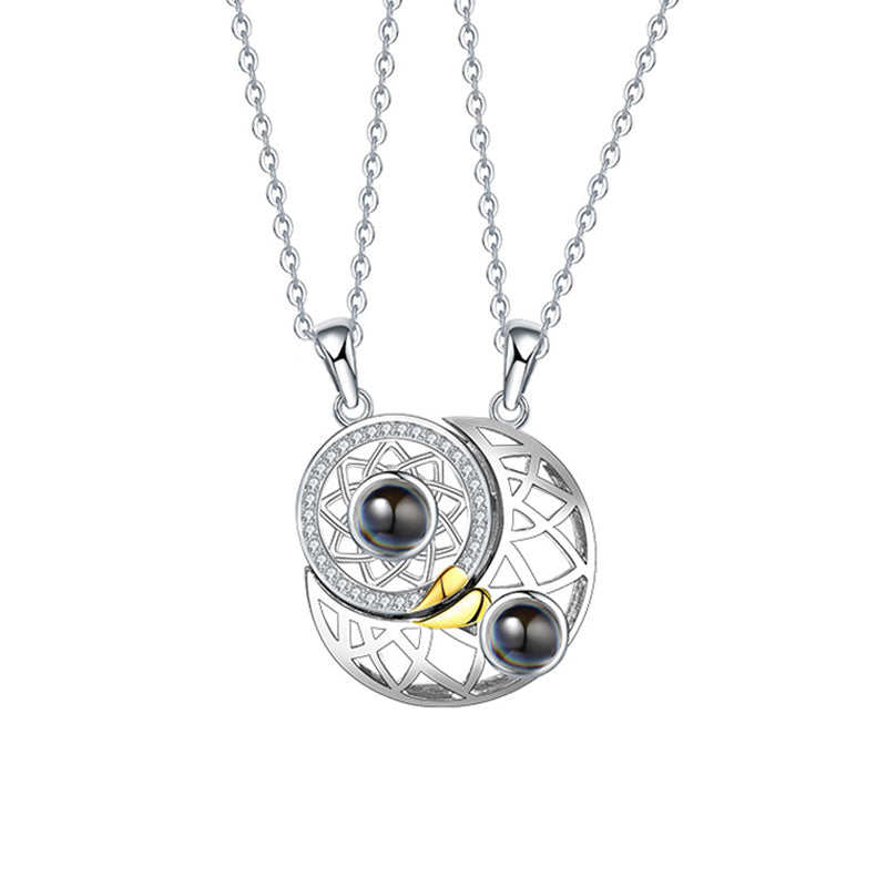 Exquisites Geschenk: Verpackt mit zwei Sonnen- und Mondpaarketten. Sie sind sinnvolle und kreative passende Halsketten für Paare oder beste Freunde.