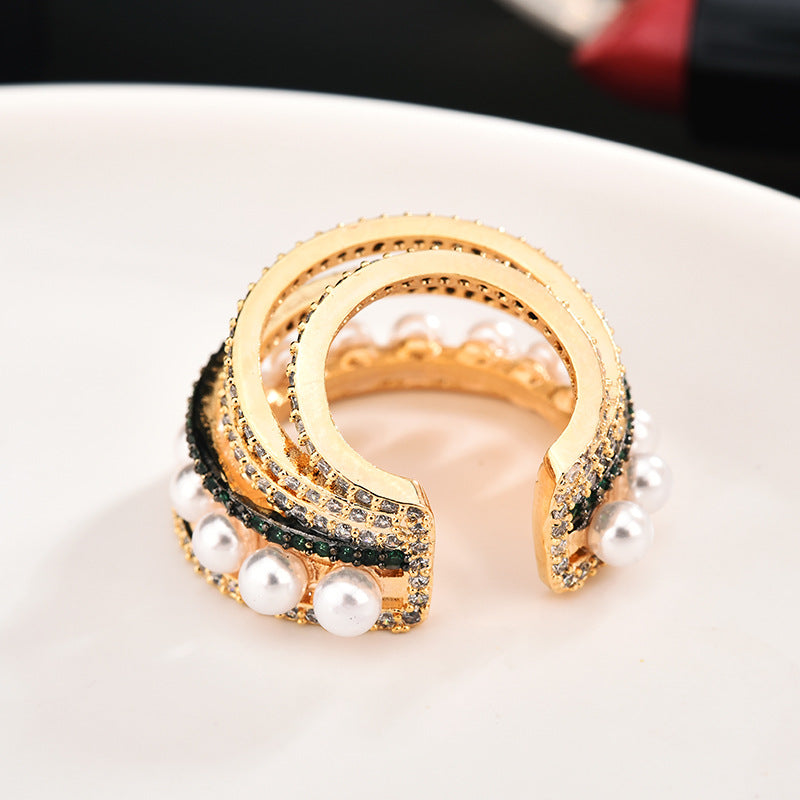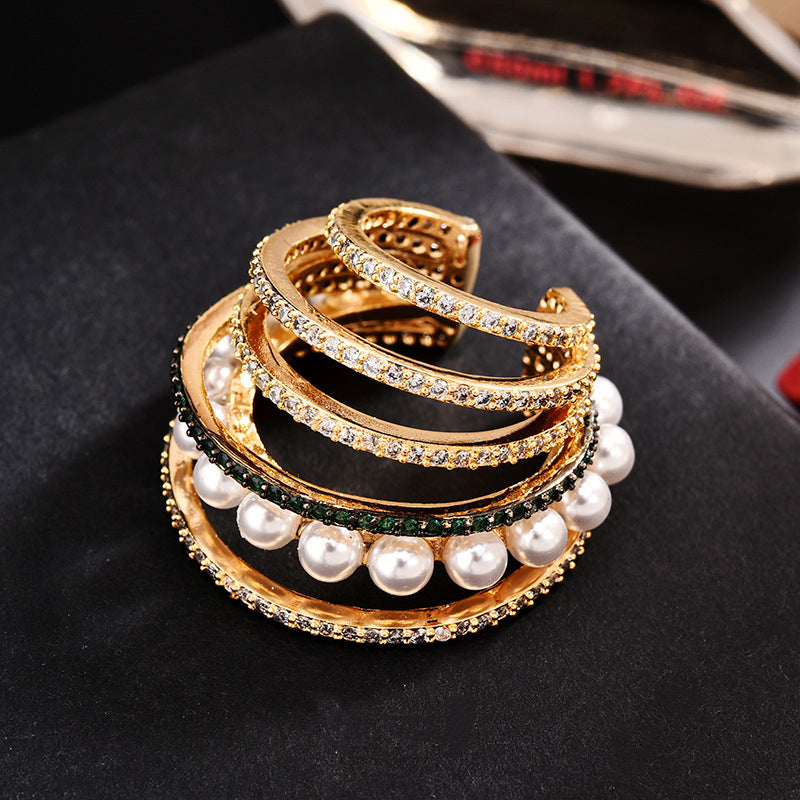 Dieser Ohrclip hat ein Multi-Ring-Design und das exquisite Inlay-Verfahren macht die Ohrringe sehr glänzend und macht Sie schöner.
