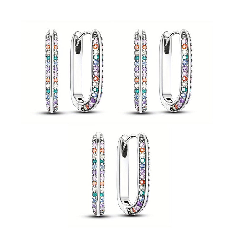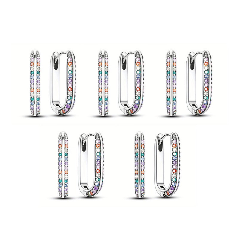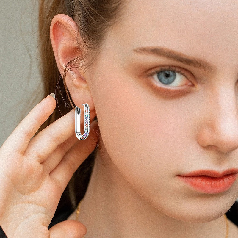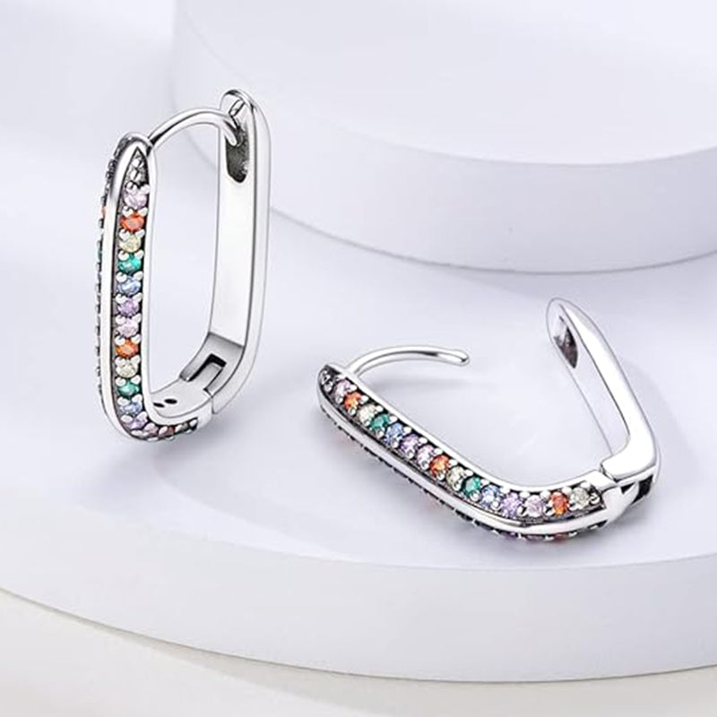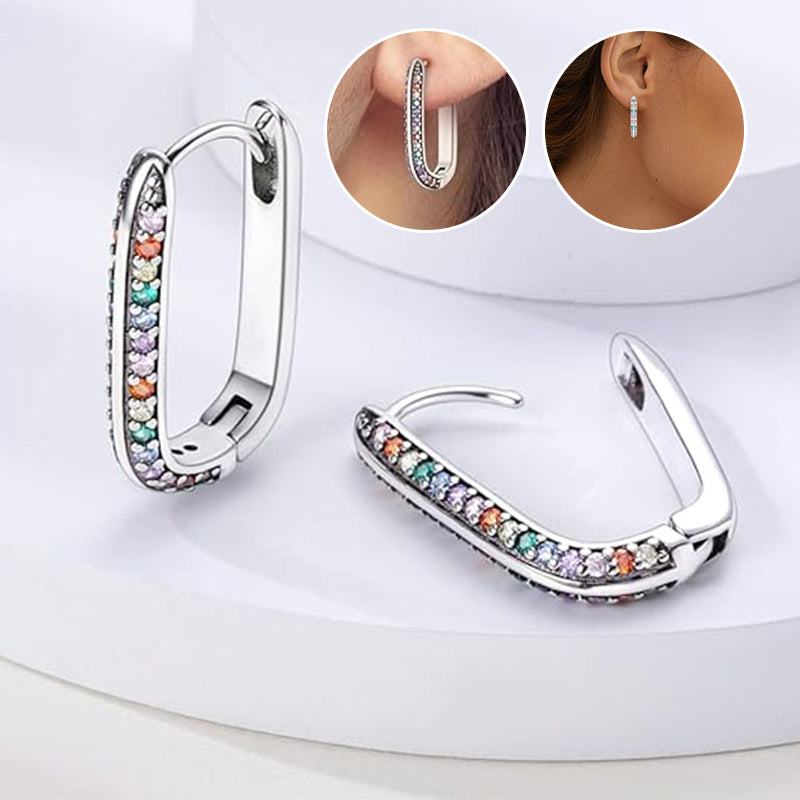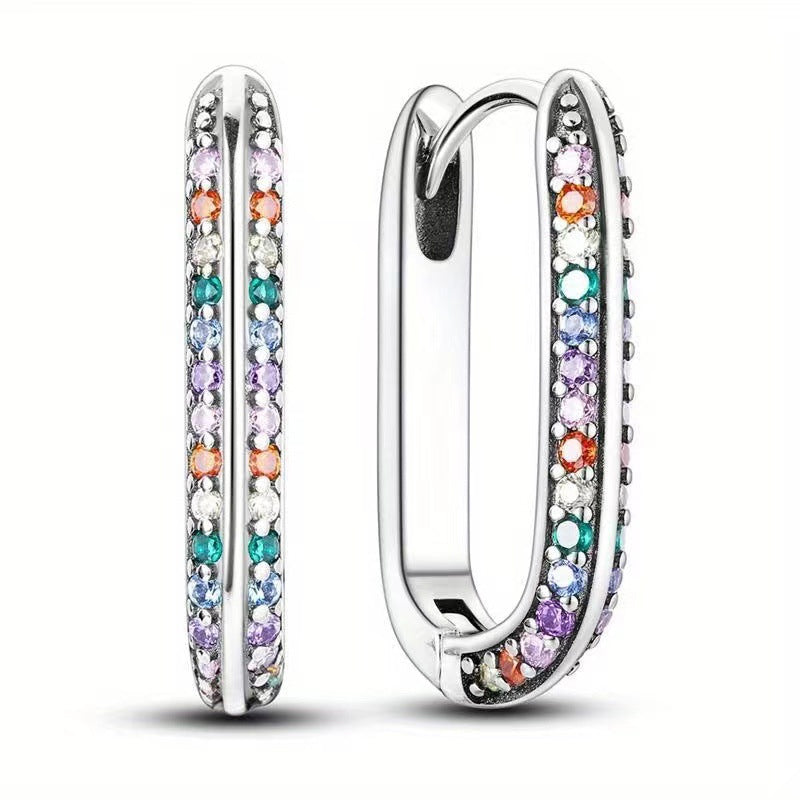 PAKET: 1*Modische geometrische Ohrclips mit bunten Zirkonia-Steinen