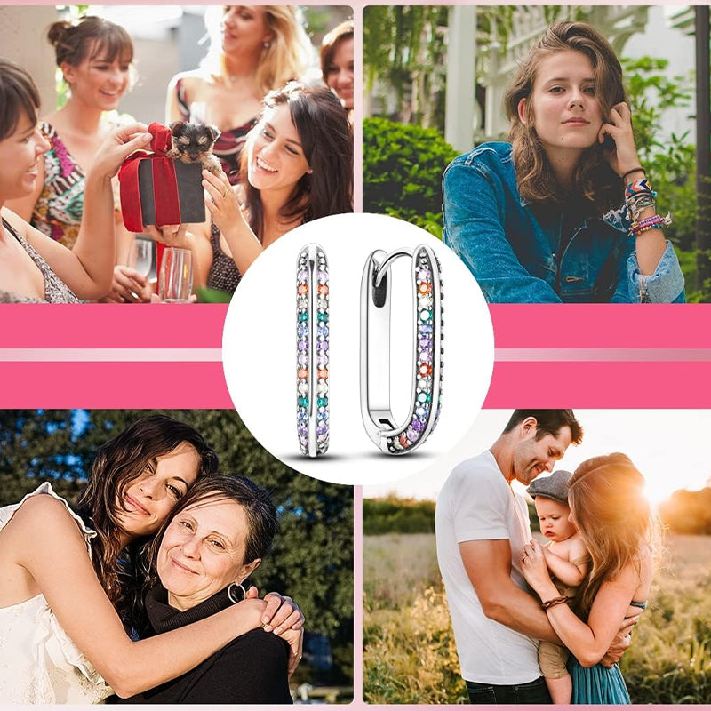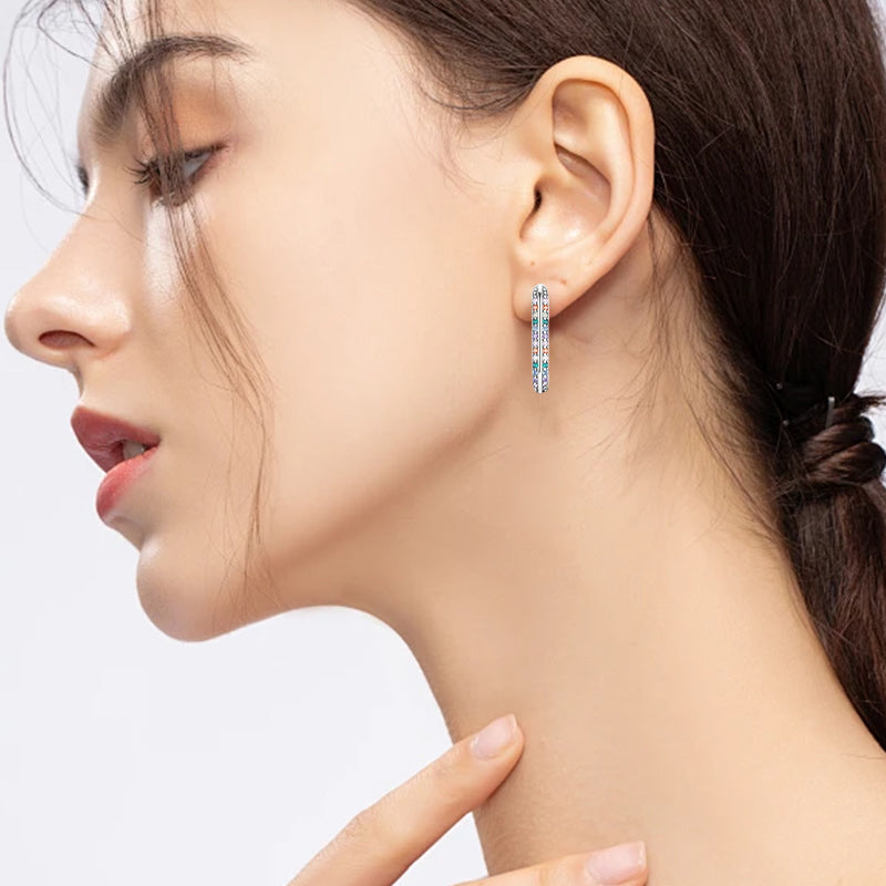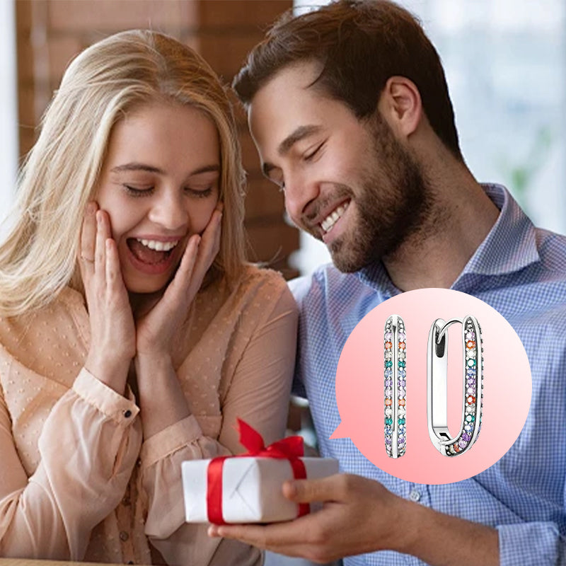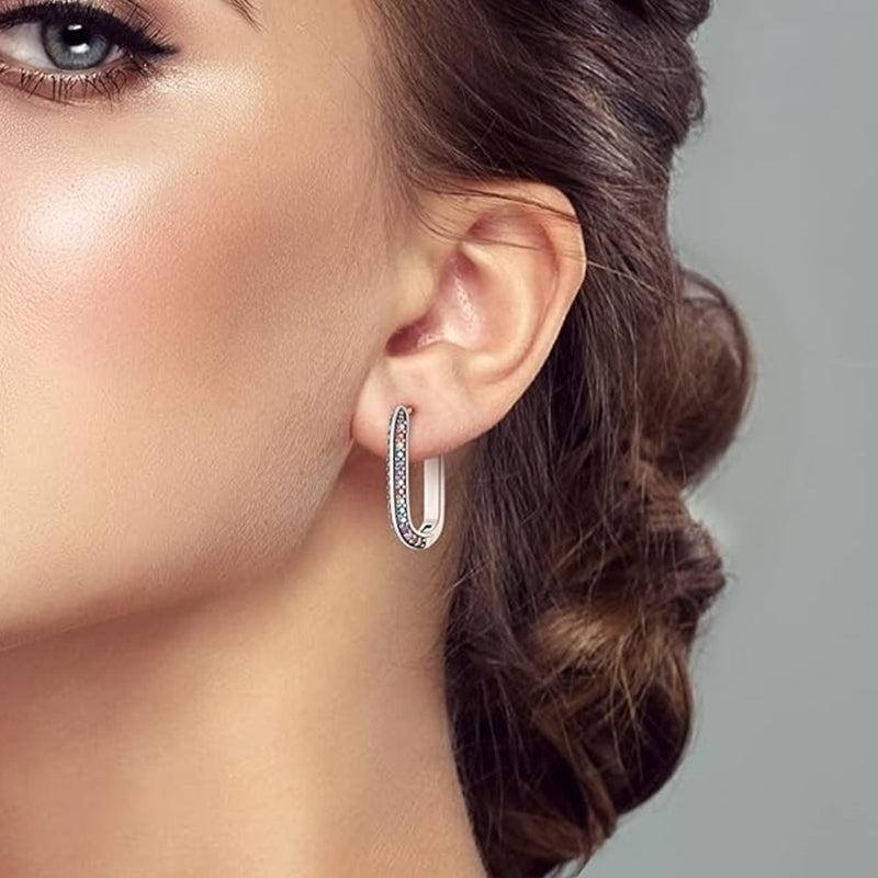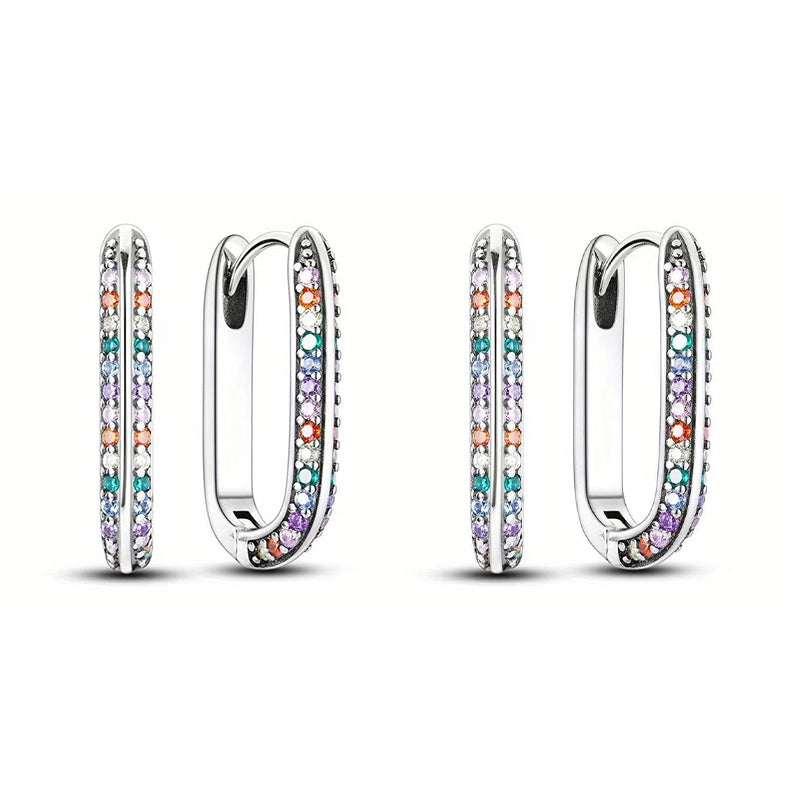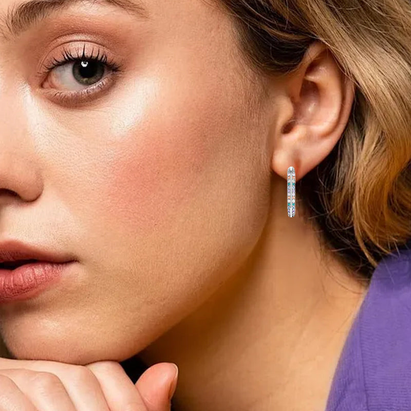 PAKET: 1*Modische geometrische Ohrclips mit bunten Zirkonia-Steinen