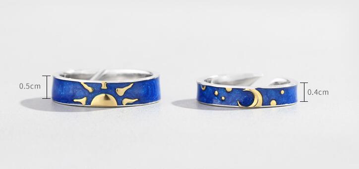 Diese Liebesringe, die zu Sonne und Mond passen, sind ein besonderes Symbol für die Verbindung und Bindung zwischen Lieben – stellen Sie sich vor, Sie tragen Ihre Liebe an Ihrem Finger, damit die Welt sie sehen kann. Es ist eine süße Art, Ihre Intimität zu zeigen.