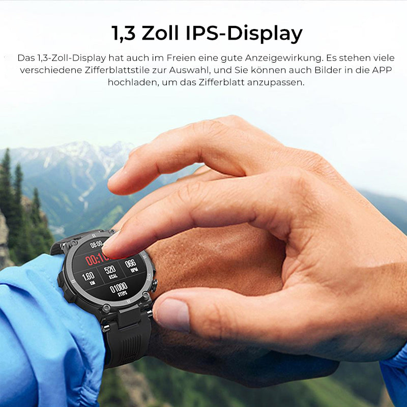 • 1,3 Zoll IPS-DISPLAY: Das 1,3-Zoll-Display hat auch im Freien eine gute Anzeigewirkung. Es stehen viele verschiedene Zifferblattstile zur Auswahl, und Sie können auch Bilder in die APP hochladen, um das Zifferblatt anzupassen.