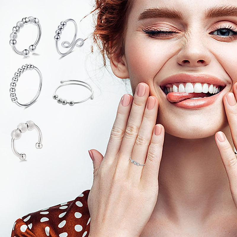 FIDGET RING FÜR ANGST: Dieser zierliche und dennoch starke Ring ist eine großartige Möglichkeit, Stress oder Angst auf stilvolle Weise zu bewältigen :) Die Perlen bewegen sich frei um das Band. Sie können sie bewegen, um konzentriert oder entspannt zu bleiben.