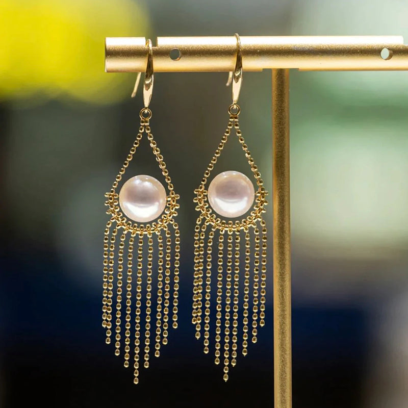 [AUSGEZEICHNETES DESIGN]: Die alltagstauglichen Perlenquastenohrringe für Damen fühlen sich wackelig und funkelnd in den Ohren an. Diese langen Quastenohrringe sind leicht und fühlen sich sehr bequem an.
