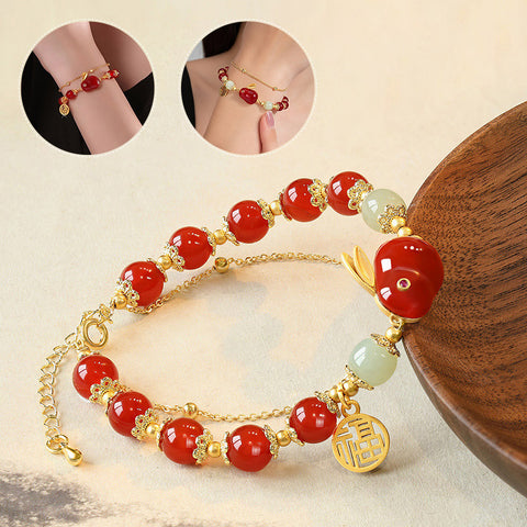 • 1 * Rotes Achat Jade Kaninchen Armband