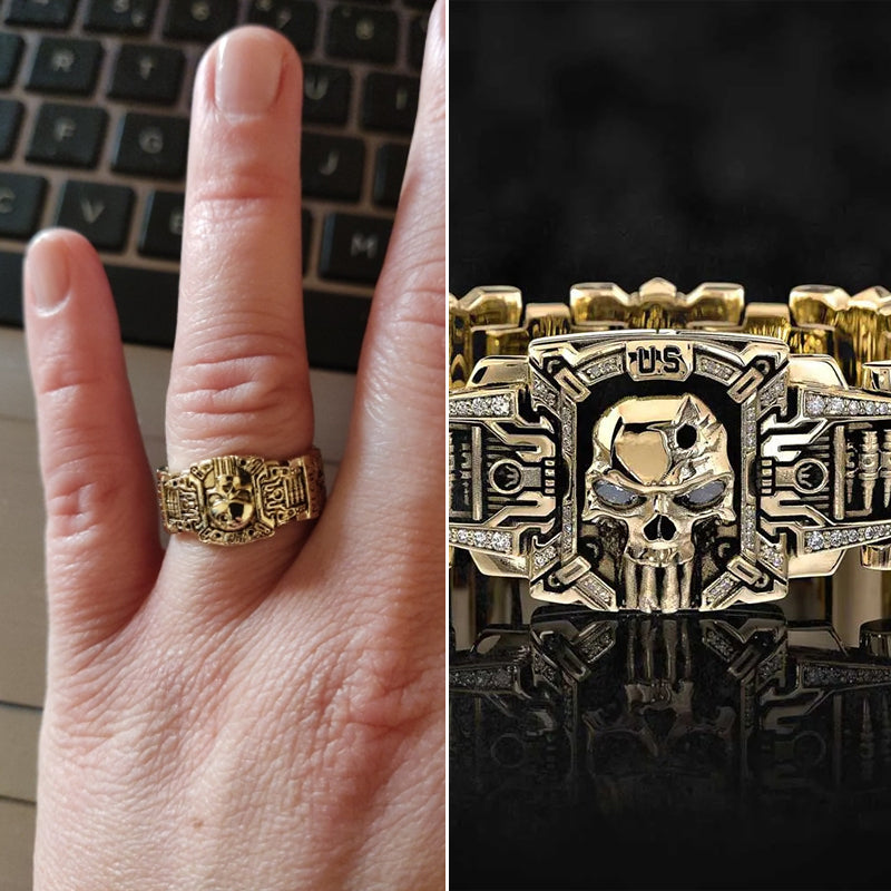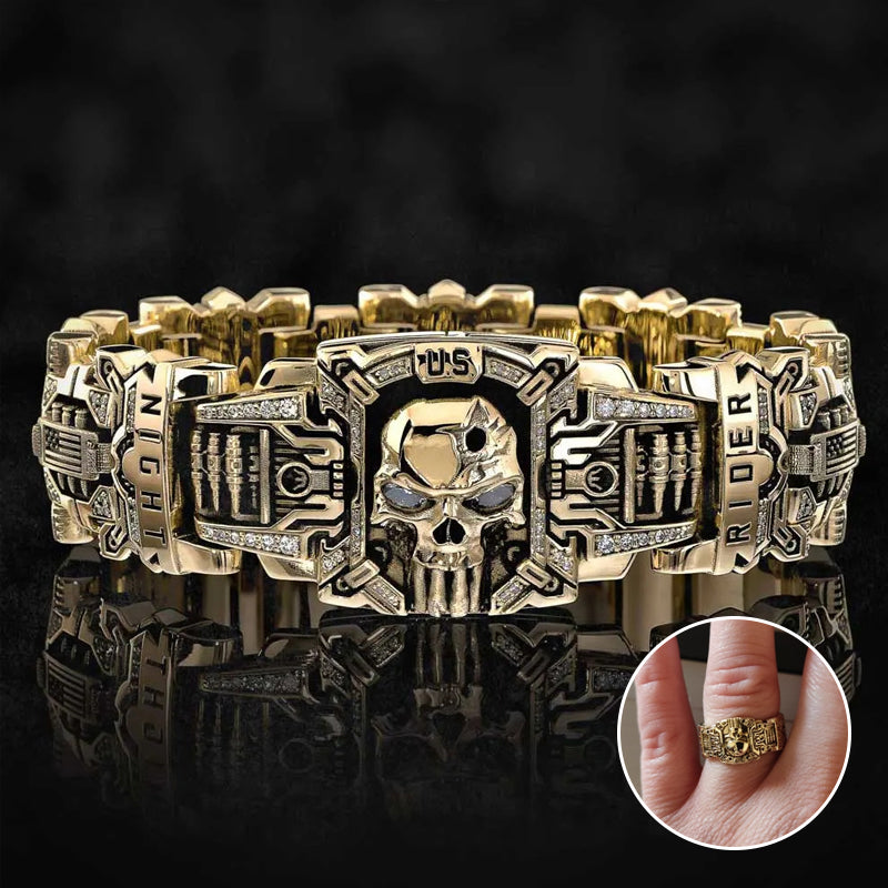 Kreatives Design: Trendiger Totenkopf-Kugelring, Totenkopf und Stier machen mehr Coolness und Einzigartigkeit. Und der Ring wird mysteriöser und cooler.