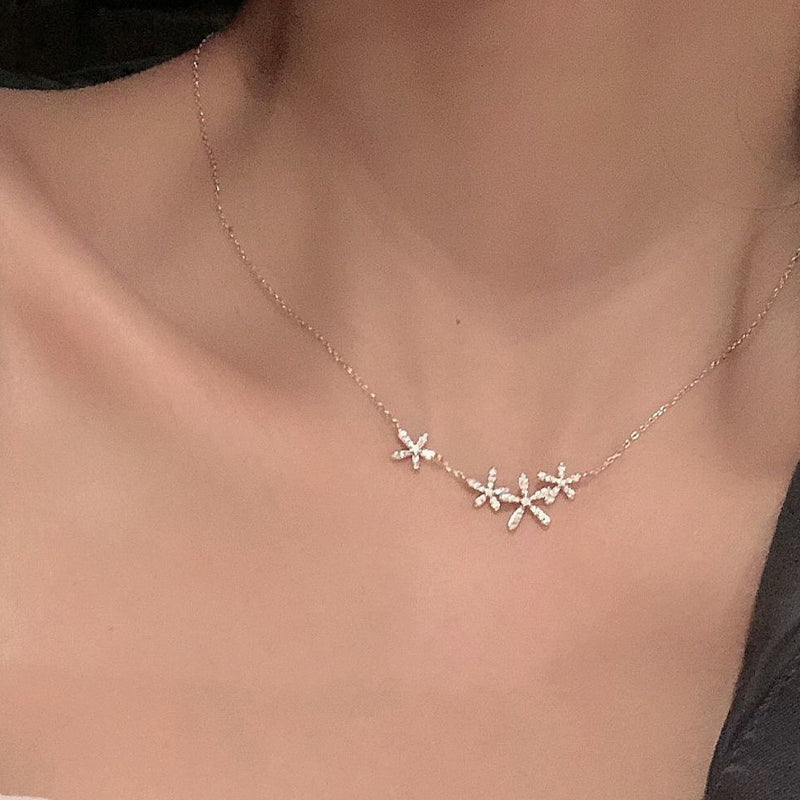 Halskette mit Blumenanhänger: Die Halskette mit Blumenanhänger ist mit funkelnden Zirkonia besetzt. Einfaches und schönes Design, Sie können es mit anderen Halsketten verwenden, um den Bedürfnissen verschiedener Situationen gerecht zu werden.