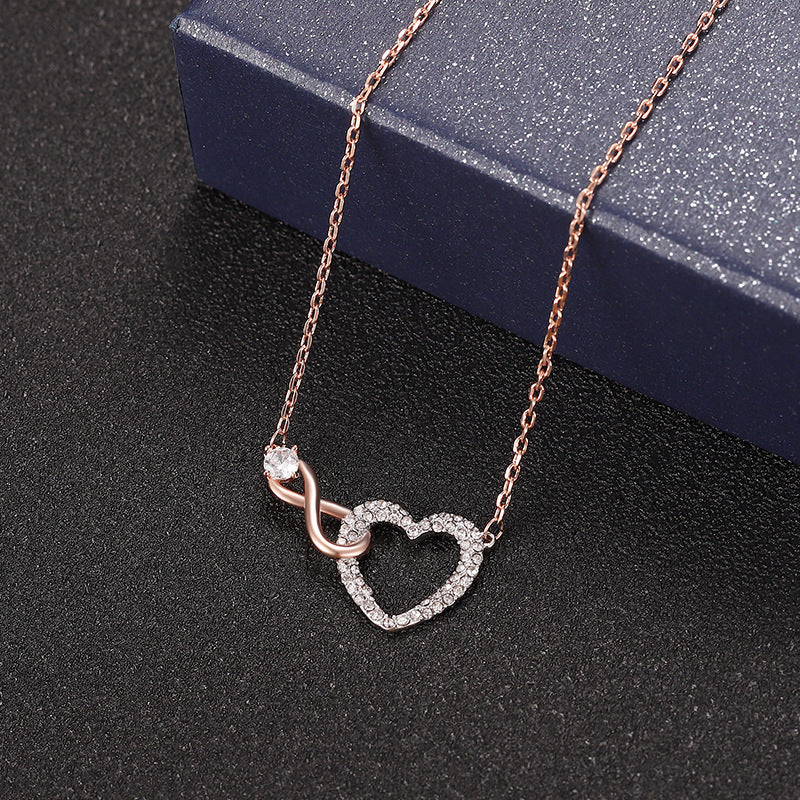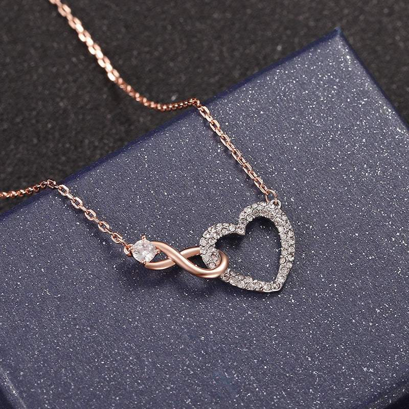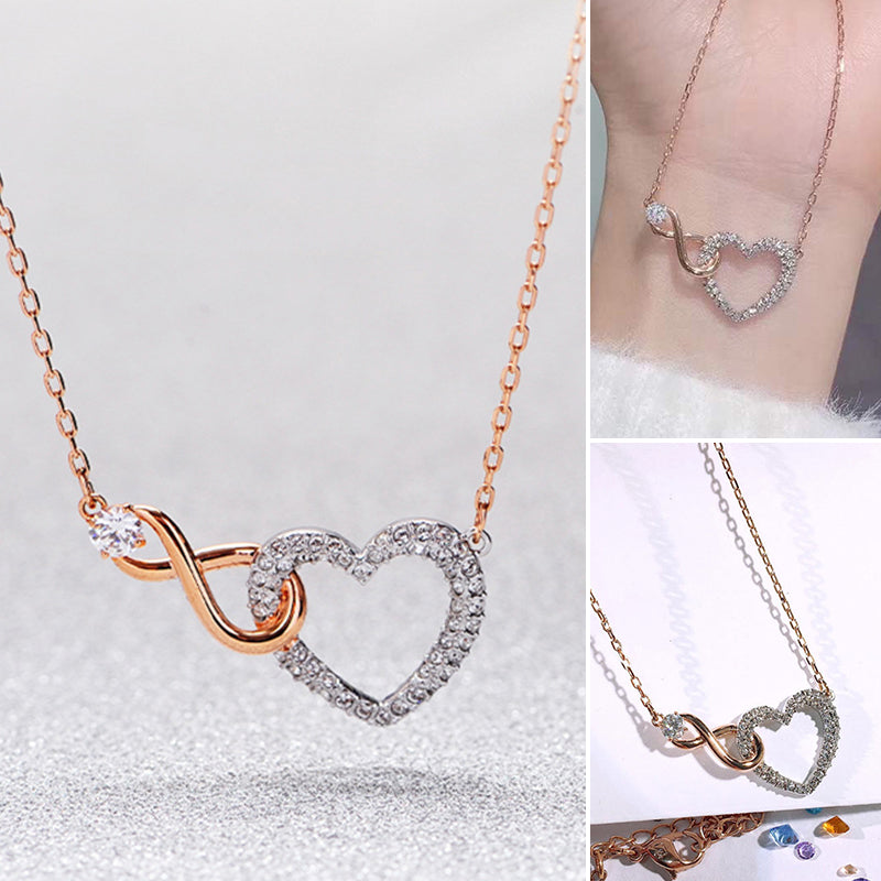 Minimalistisch und einzigartig: Die Unendlichkeitsherzkette zeigt ein zartes Herz, das mit einem zarten Unendlichkeitszeichen verschlungen ist, und gepaart mit einem Hauch von funkelndem klarem Kristallpavé an einer zarten Kette.