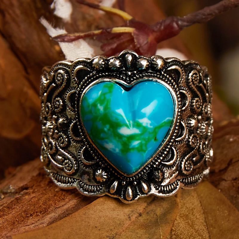 • Ovaler Türkisring aus natürlichem Edelstein im Vintage-Stil. Bewährt und langlebig. Mit Legierung für zusätzliche Festigkeit und Haltbarkeit gemischt.