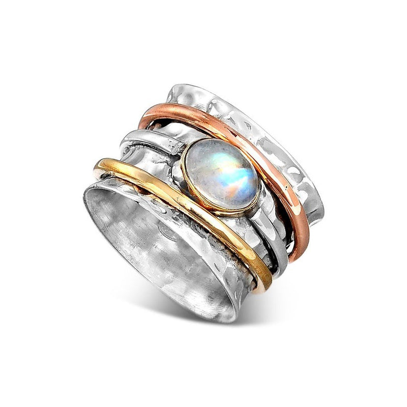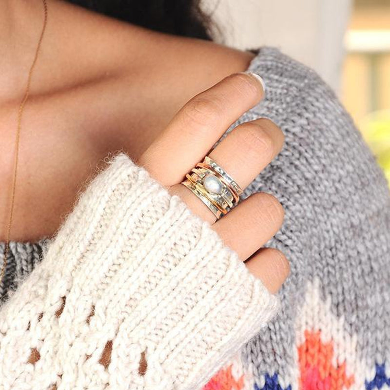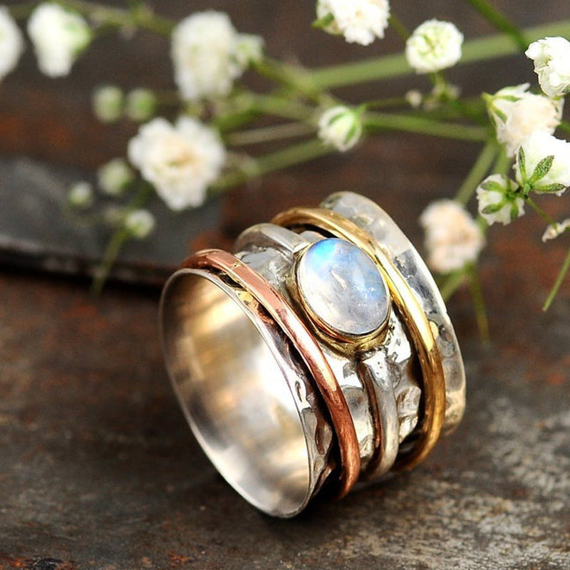 Kreative Stile: Dieser Mondsteinring ist der perfekte Ring, kreativ und schön mit einem markanten Edelstein. Er kann am Mittel- oder Zeigefinger oder sogar als Daumenring getragen werden.