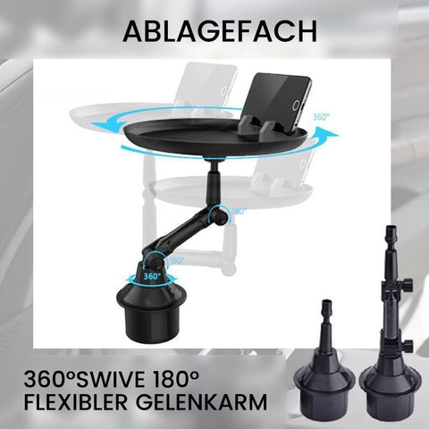 • Unser Car 360 ° Swivel Storage Tray ist mit einer 360 ° -Schwenkfunktion und einem Gelenkarm ausgestattet, mit dem Sie den Tisch in die perfekte Position bringen oder alternativ das Tablett zwischen Ihnen und dem Passagier hin und her drehen können.