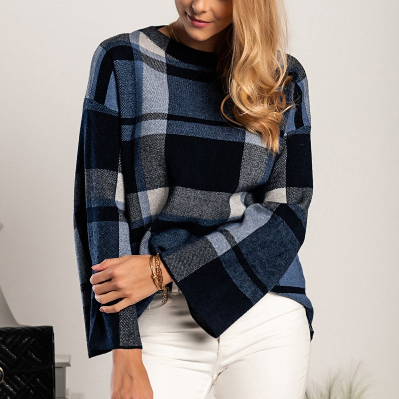 Kariertes Sweatshirt mit Rundhalsausschnitt und Farbblockmuster