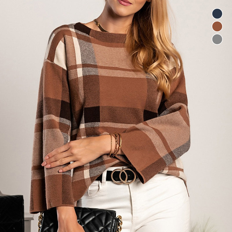 • Paket: Kariertes Sweatshirt mit Rundhalsausschnitt und Farbblockmuster * 1