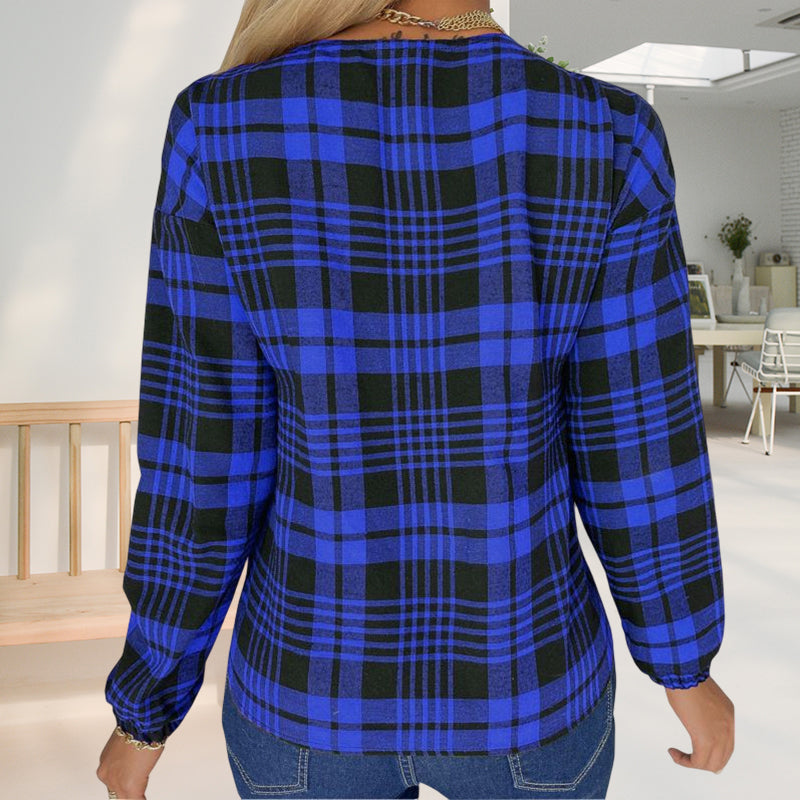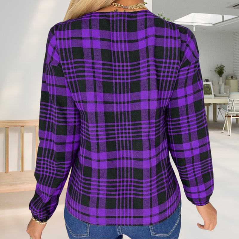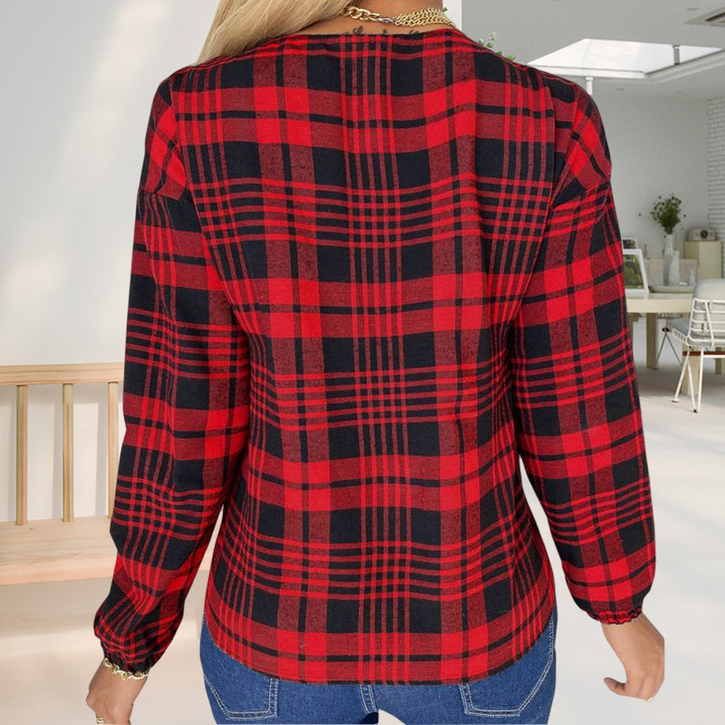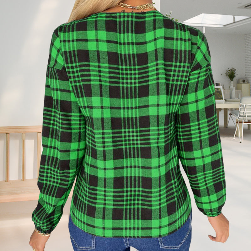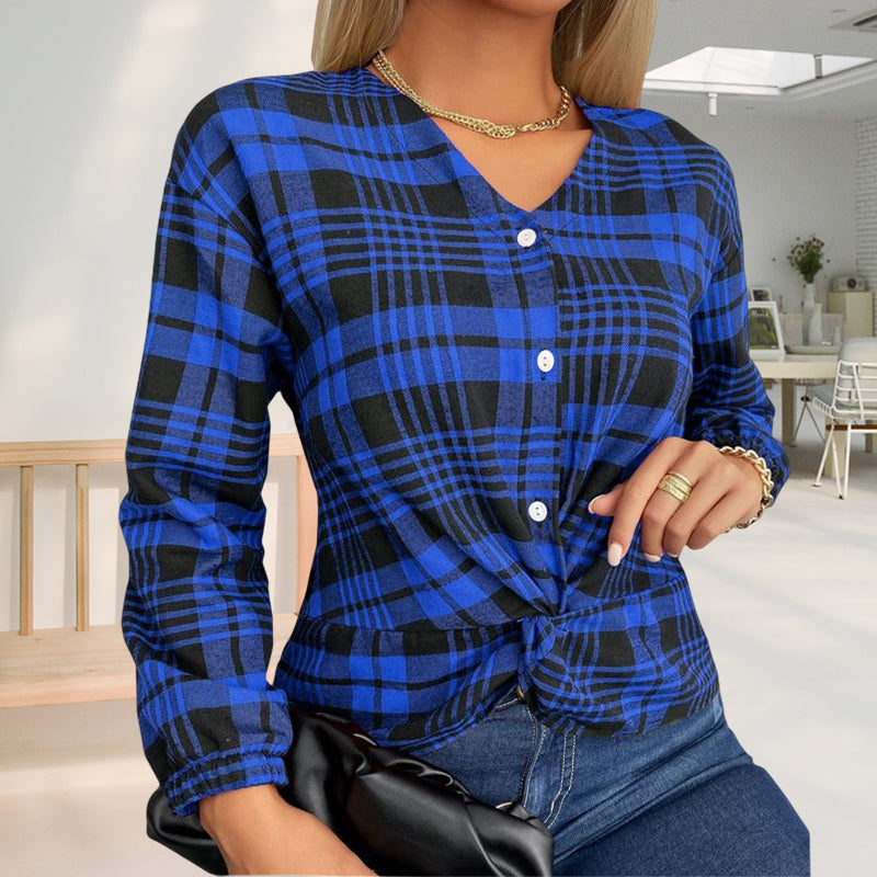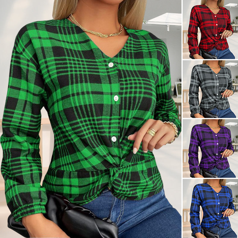 - Stil: V-Ausschnitt kariertes T-Shirt