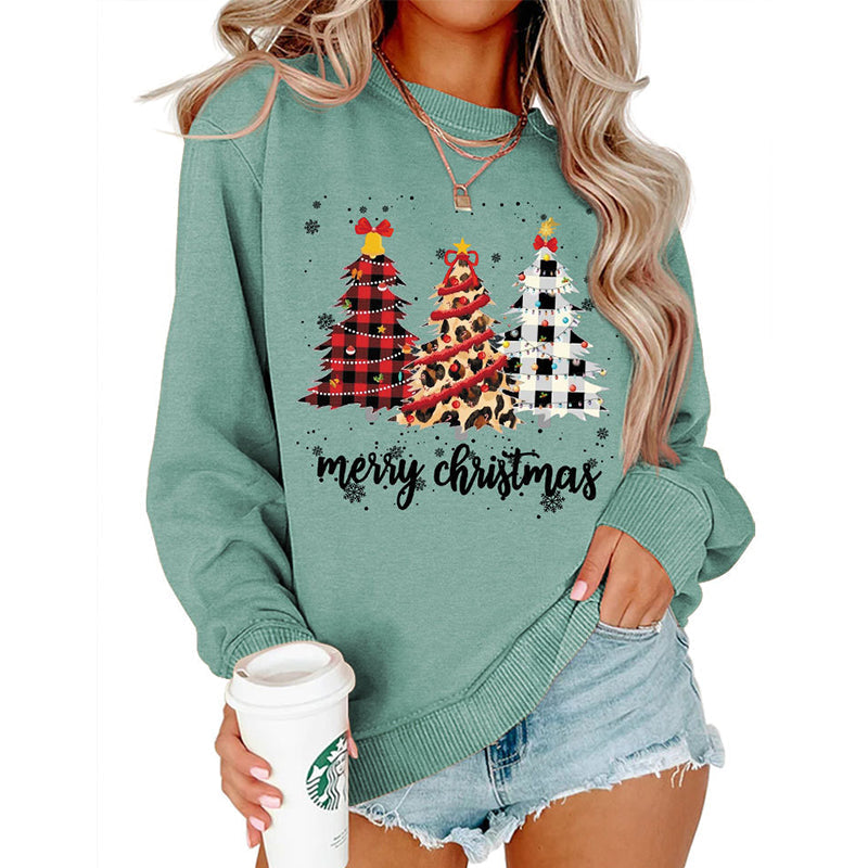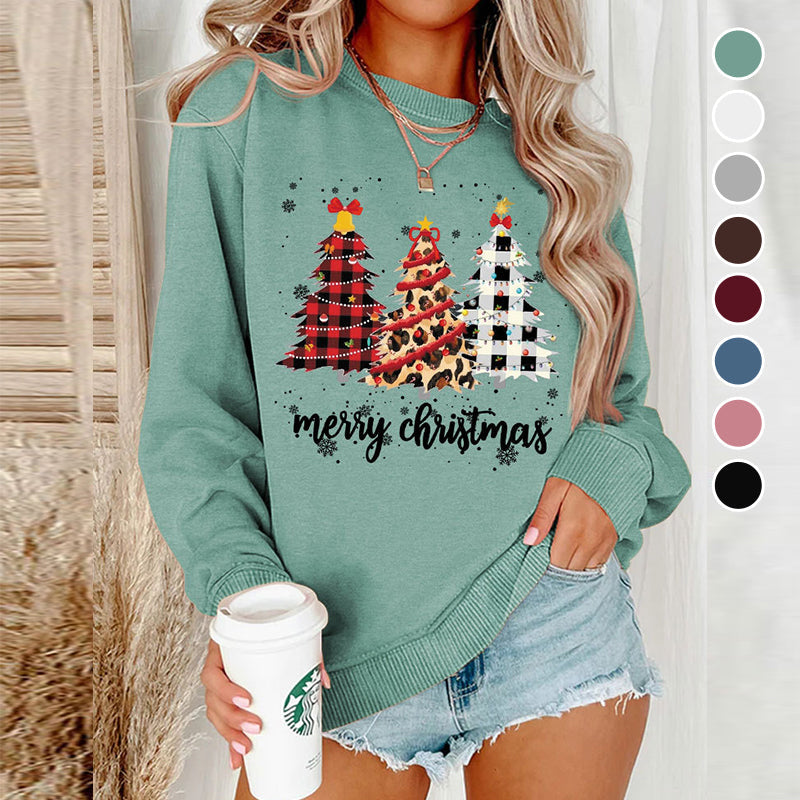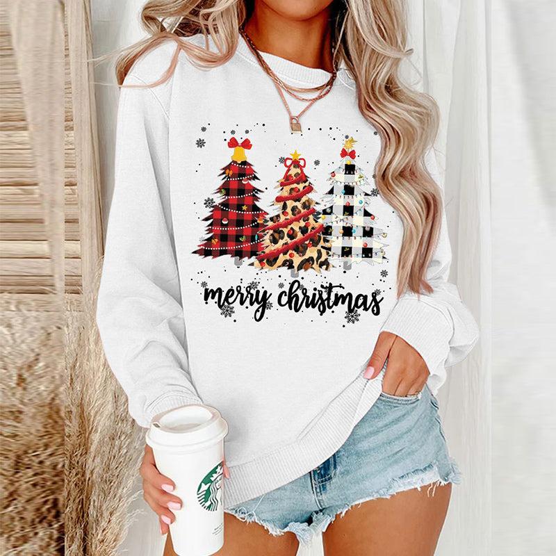Stoff: Lässiges Langarm-Sweatshirt mit Weihnachtsbaum-Aufdruck für Damen. Weicher, atmungsaktiver und leichter Stoff.