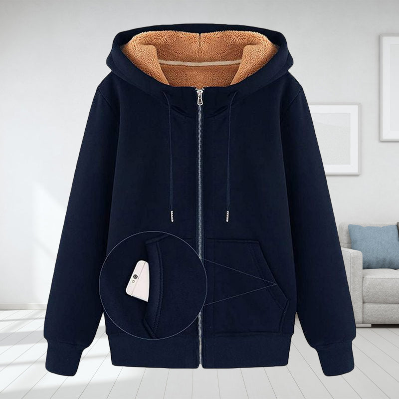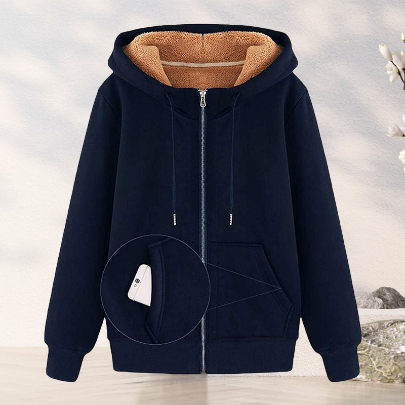 - Stil: Kapuzen-Fleecemantel mit Reißverschluss