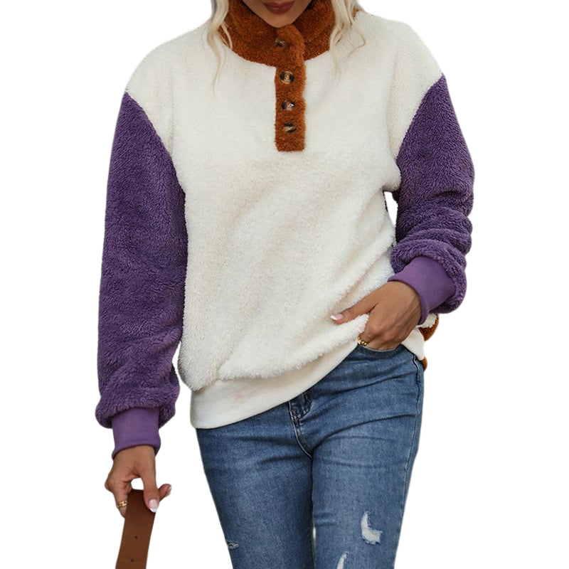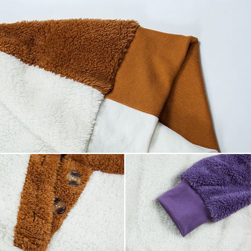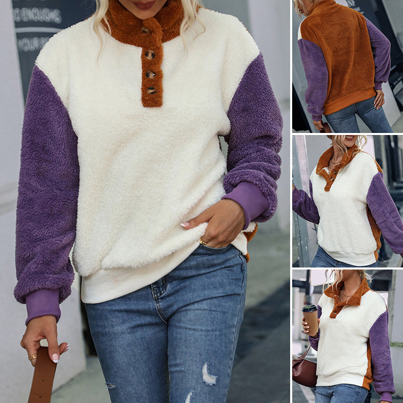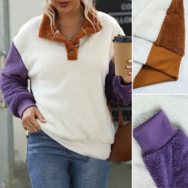 • Paket: Lockerer Langärmliger Plüschpullover mit Rundhalsausschnitt und Farbblock * 1