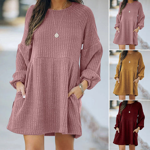 Design: Langarm-Pulloverkleid für Damen / Rundhalsausschnitt / Strick / übergroß / freundliche Haptik / gerippte Bündchen und Saum / einfarbig / locker / bequemer Pullover / lässig / einfach