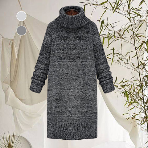 - 1 * Mittellanges Strickkleid mit Rollkragen