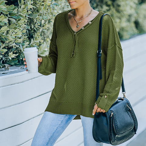 Lockerer Langarm-Pullover mit V-Ausschnitt