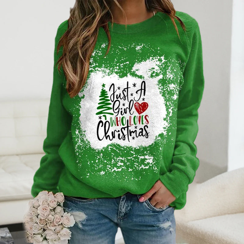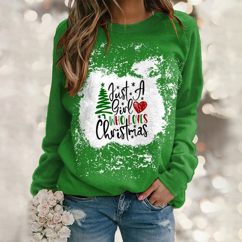 Design: Rundhalsausschnitt, lange Ärmel, weihnachtlicher Aufdruck, lässiger Stil, Übergröße.