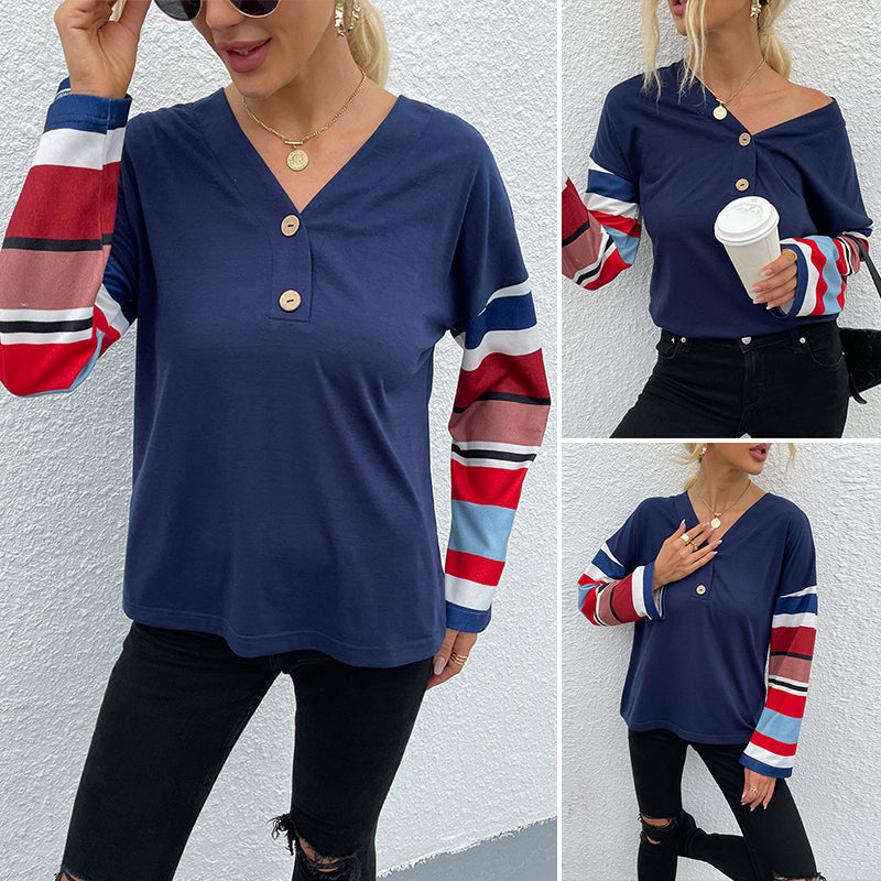 • Paket: Damen T-Shirt mit V-Ausschnitt und gestreiften Ärmeln * 1