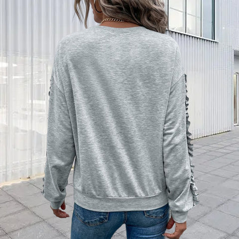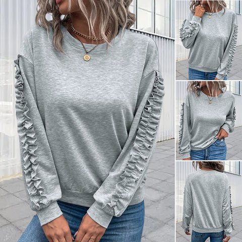 Eigenschaften: Dieses Damen-T-Shirt ist ein langärmeliges, rundhalsiges, übergroßes, lässiges T-Shirt. Unser leichtes Damen-T-Shirt wird Sie in diesem Herbst und Winter charmanter machen.