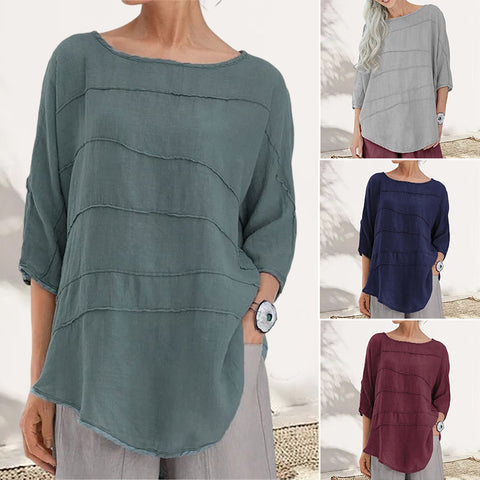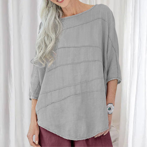Schönes T-shirt für Damen, einfarbiges Design und lockere Passform. Mit diese Bluse sehen Sie fließend aus.