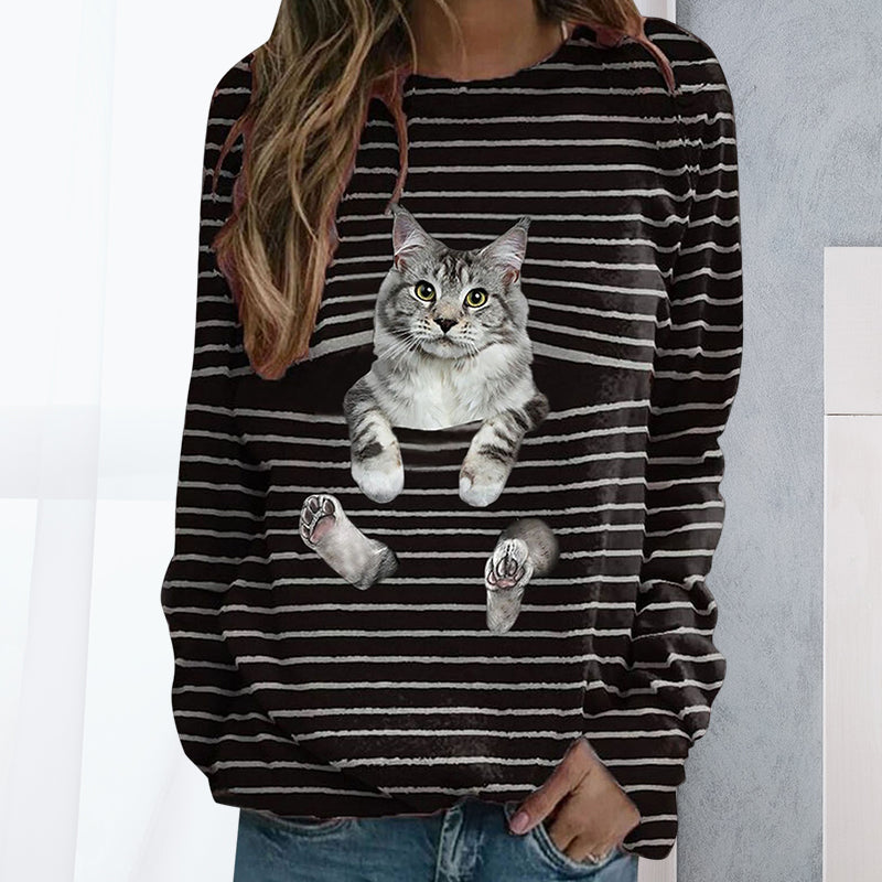 Das süße T-Shirt für Frauen hat einen modischen Novelty Cute Cat-Print, lebendig und realistisch.