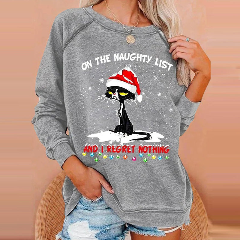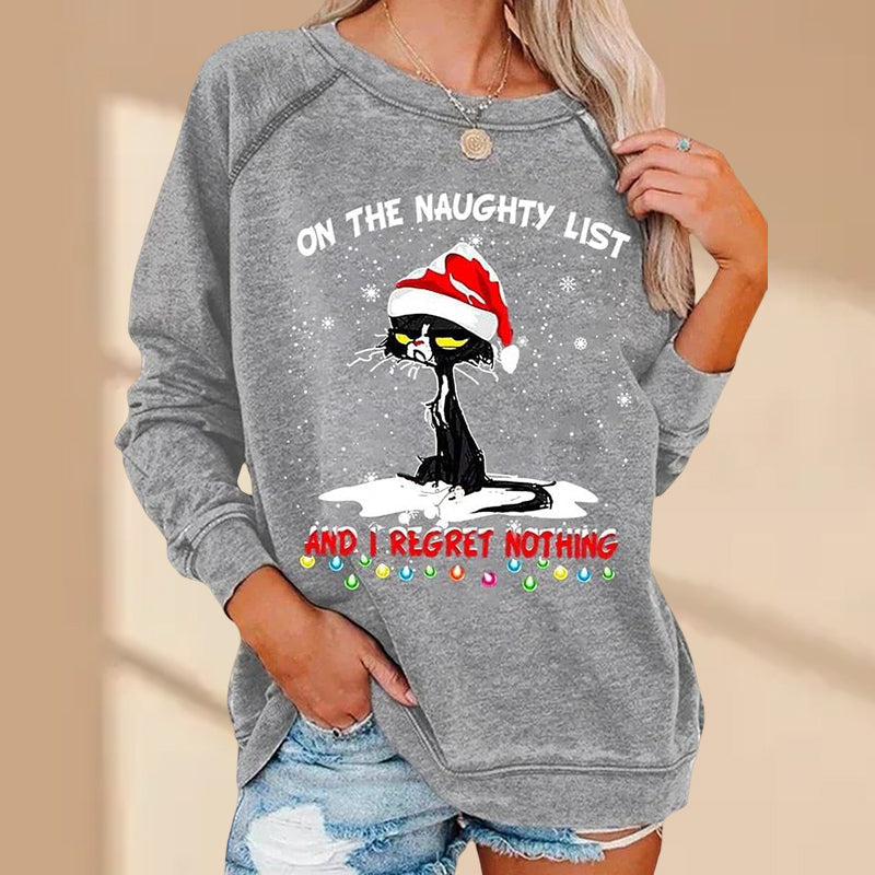Langärmliges T-Shirt mit Weihnachtskatzenmuster