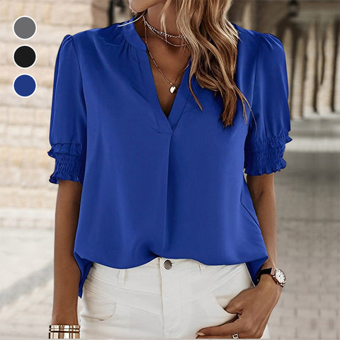 1 * Lässiges Kurzarm-Chiffonhemd mit V-Ausschnitt