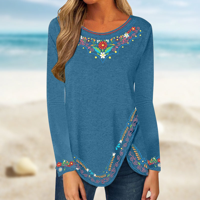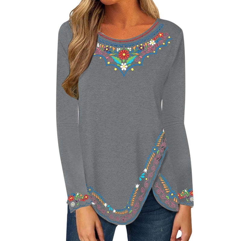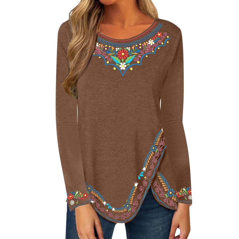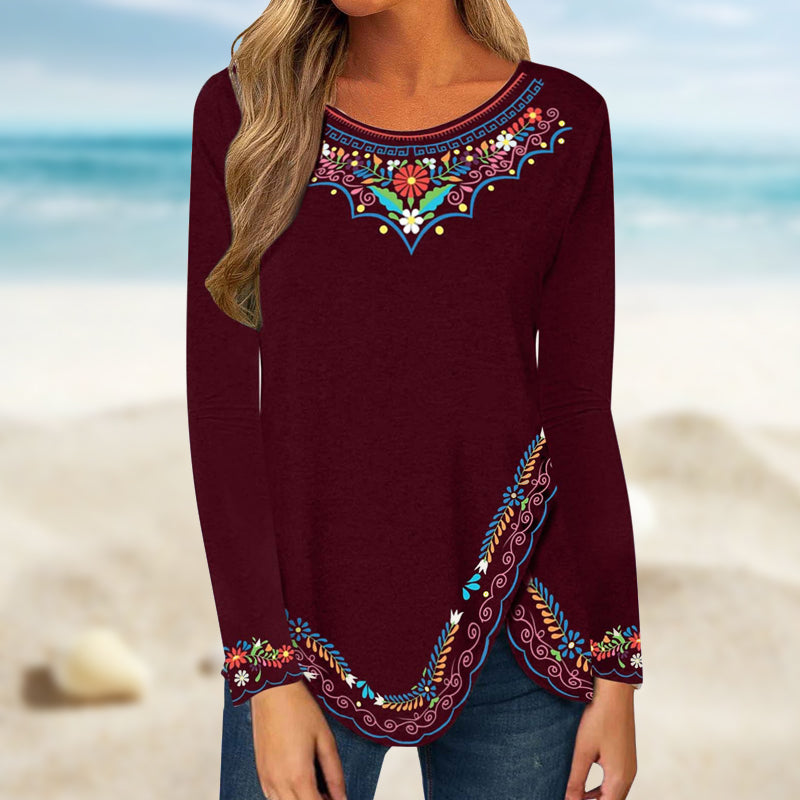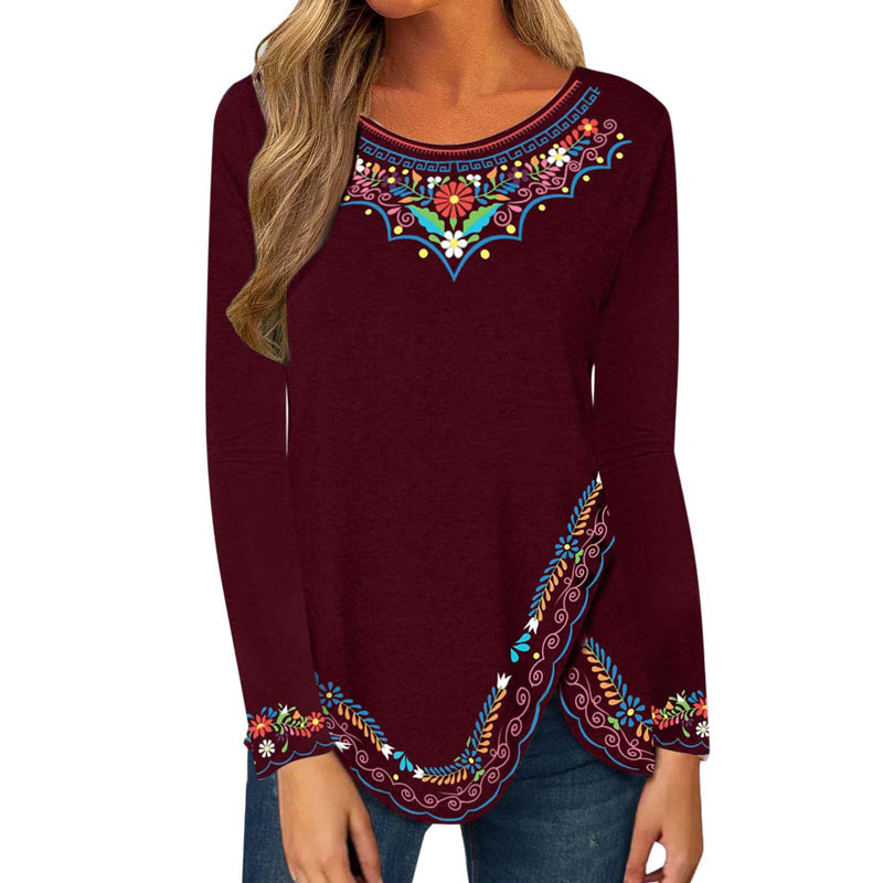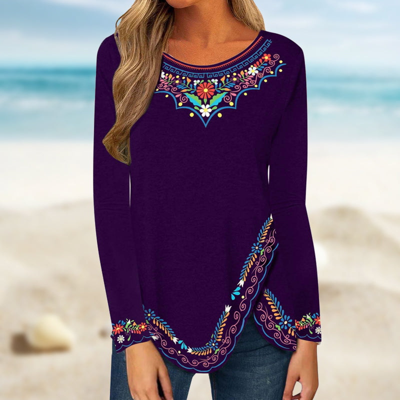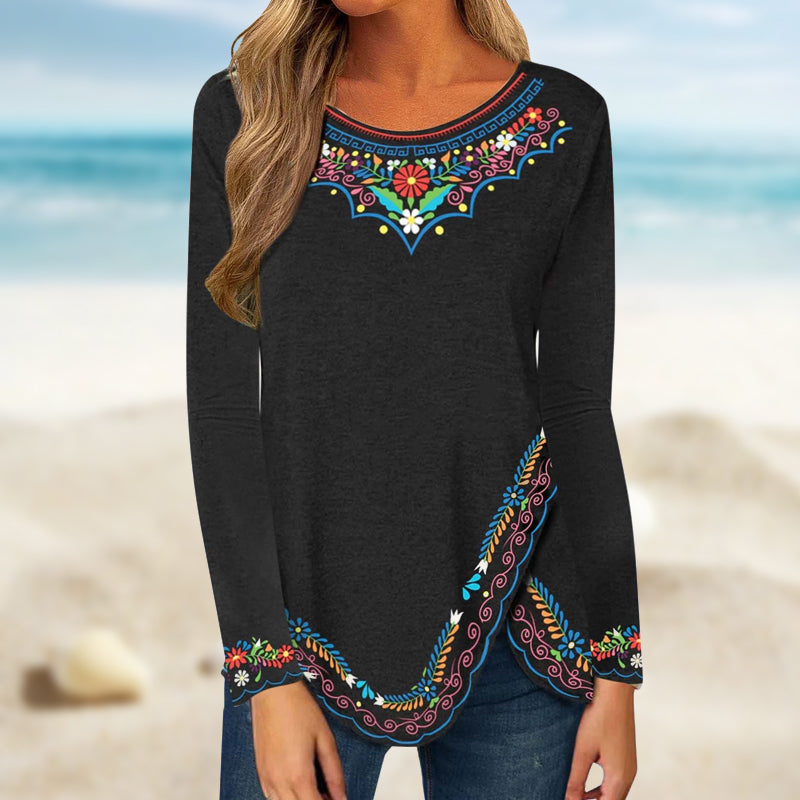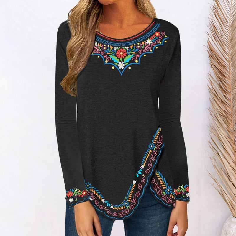 Eigenschaften: Lange Ärmel, Rundhalsausschnitt, einfarbig, übergroß, Korsett, Baumwolle, ethnischer Druck, lockere Passform