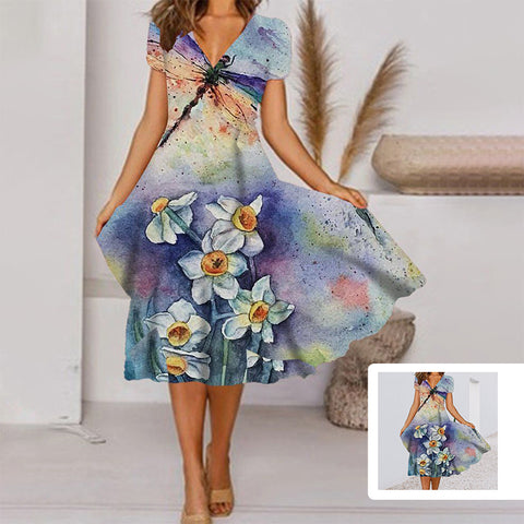 Einzigartiges Design: V-Ausschnitt, lange, entspannte Passform. Dieses Sommerkleid ist weich, bequem und atmungsaktiv, perfekt für heiße Sommer und feuchtes Wetter. Dünn, aber undurchsichtig.