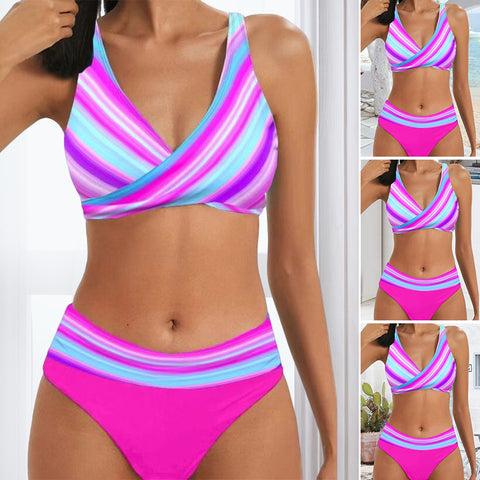 - 1 * Zweiteiliger gestreifter Badeanzug