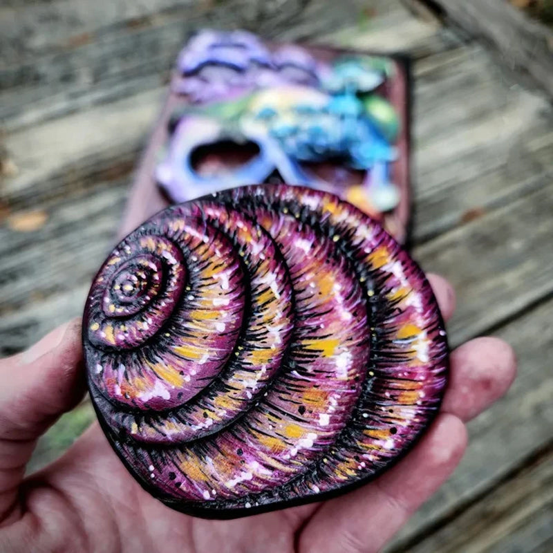 Dieses wunderschön gefertigte Schlüsseletui verfügt über ein atemberaubendes Totenkopf-Design, umgeben von komplizierten natürlichen Elementen wie Pilzen und Blättern, was seinem Aussehen einen Hauch von Geheimnis und Faszination verleiht. Die Schnecke neben dem Totenkopf ist nicht nur ein Schmuckstück, sie ist der Schlüssel zu dem darin verborgenen Fach. Dieses geheimnisvolle und rätselhafte interaktive Element erhöht die Attraktivität des Schlüsselkastens und macht ihn zu einem fesselnden Gesprächsstarter und Gesprächsstarter. Dies ist ein ideales Geschenk für alle, die Kunst und Funktionalität schätzen.