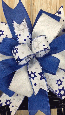 Bedeutung: Dieser Bogen ist von der israelischen Flagge inspiriert, um dem jüdischen Volk seine Unterstützung zu zeigen. Platzieren Sie es auf einem Kranz oder einer Laterne, um zu zeigen, dass Sie an der Seite Israels stehen.