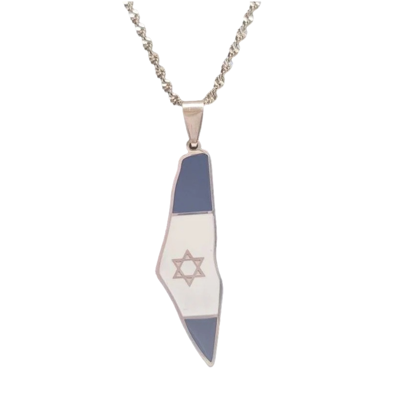Bandmuster und Farben sind Davidstern mit glänzenden blauen und silbernen Sternen/Punkten auf weißem Hintergrund mit glänzend blauem Rand, einfarbiges Blau, Weiß mit glänzendem Silber, einfarbiges Blau, Davidstern mit glänzenden blauen und silbernen Sternen/Punkten auf Weiß Hintergrund mit glänzenden blauen Rändern und einfarbigem Blau