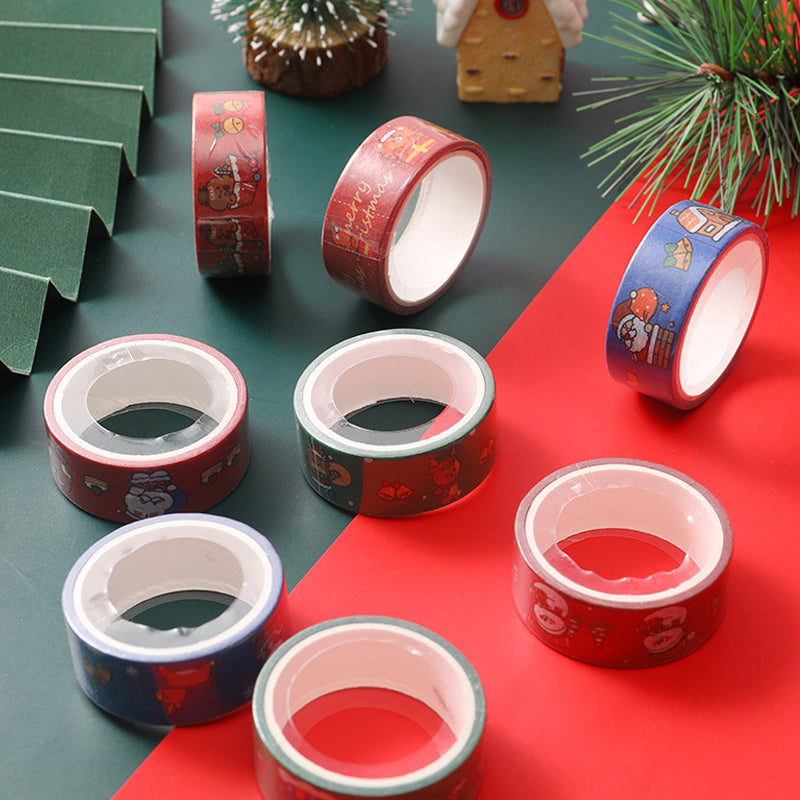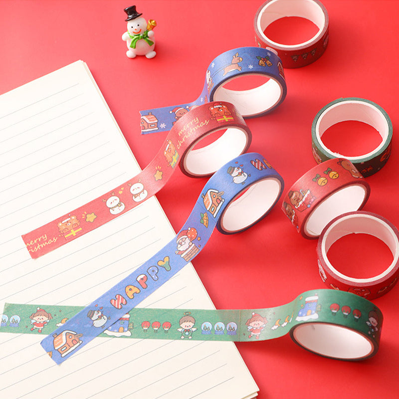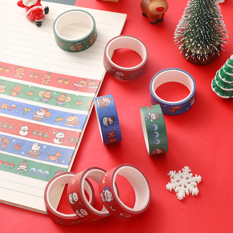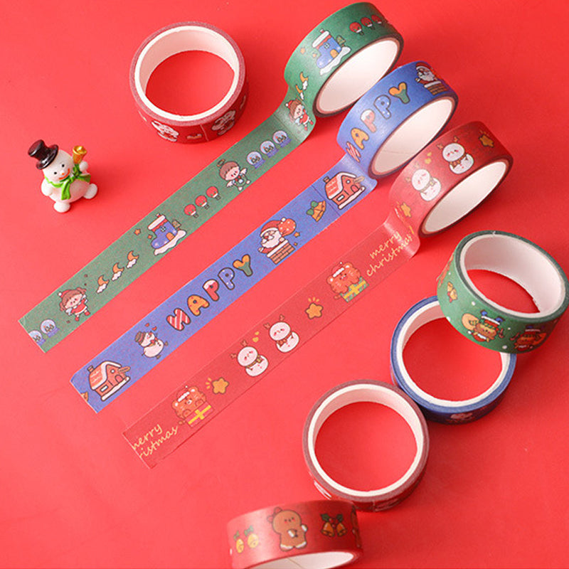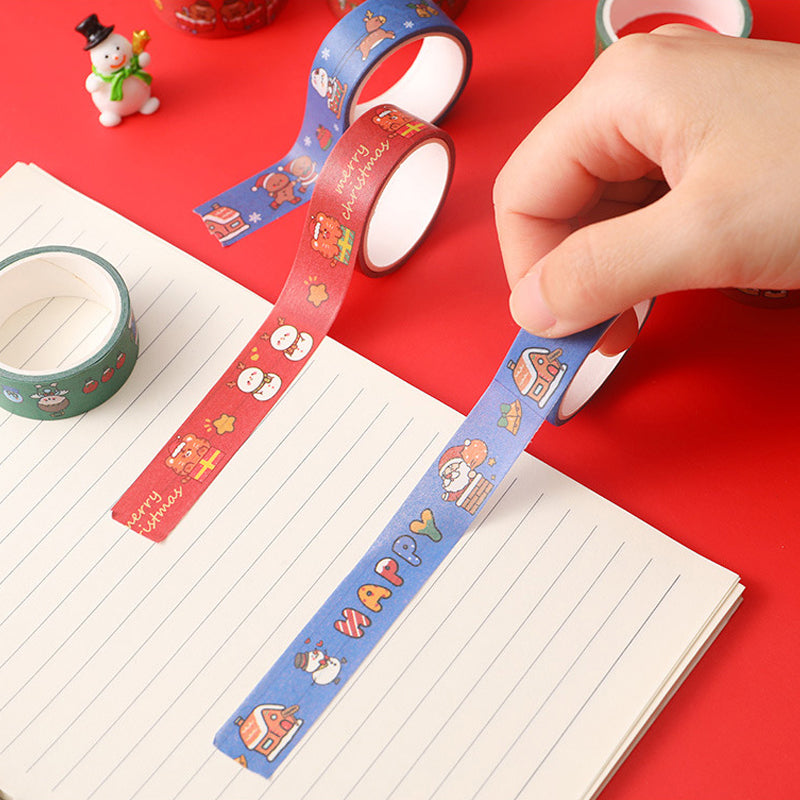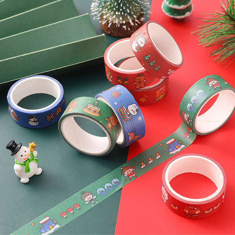 Dieser Weihnachts-Klebeband gibt es in 3 verschiedenen Farben und Mustern, und verschiedene Cartoon-Muster sind bunt und erzeugen eine starke festliche Atmosphäre.